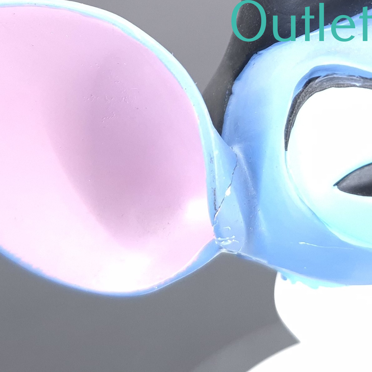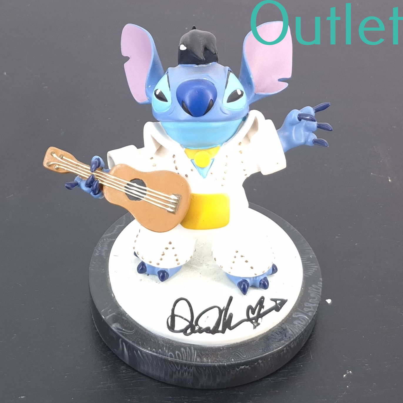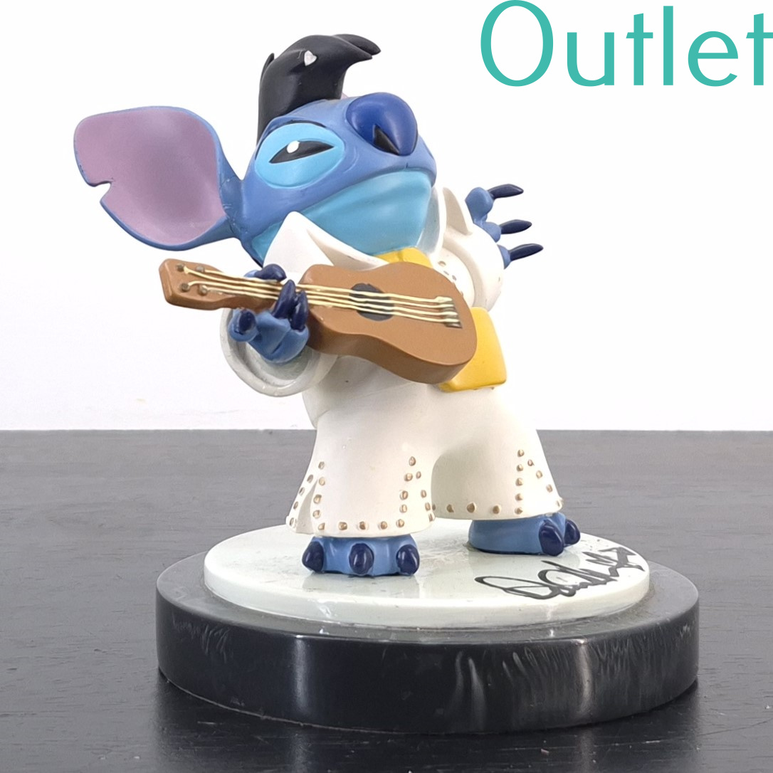 This statue of Stitch is in our outlet category because there is a part broken of his hair. And shows repairs at the ear and arm.