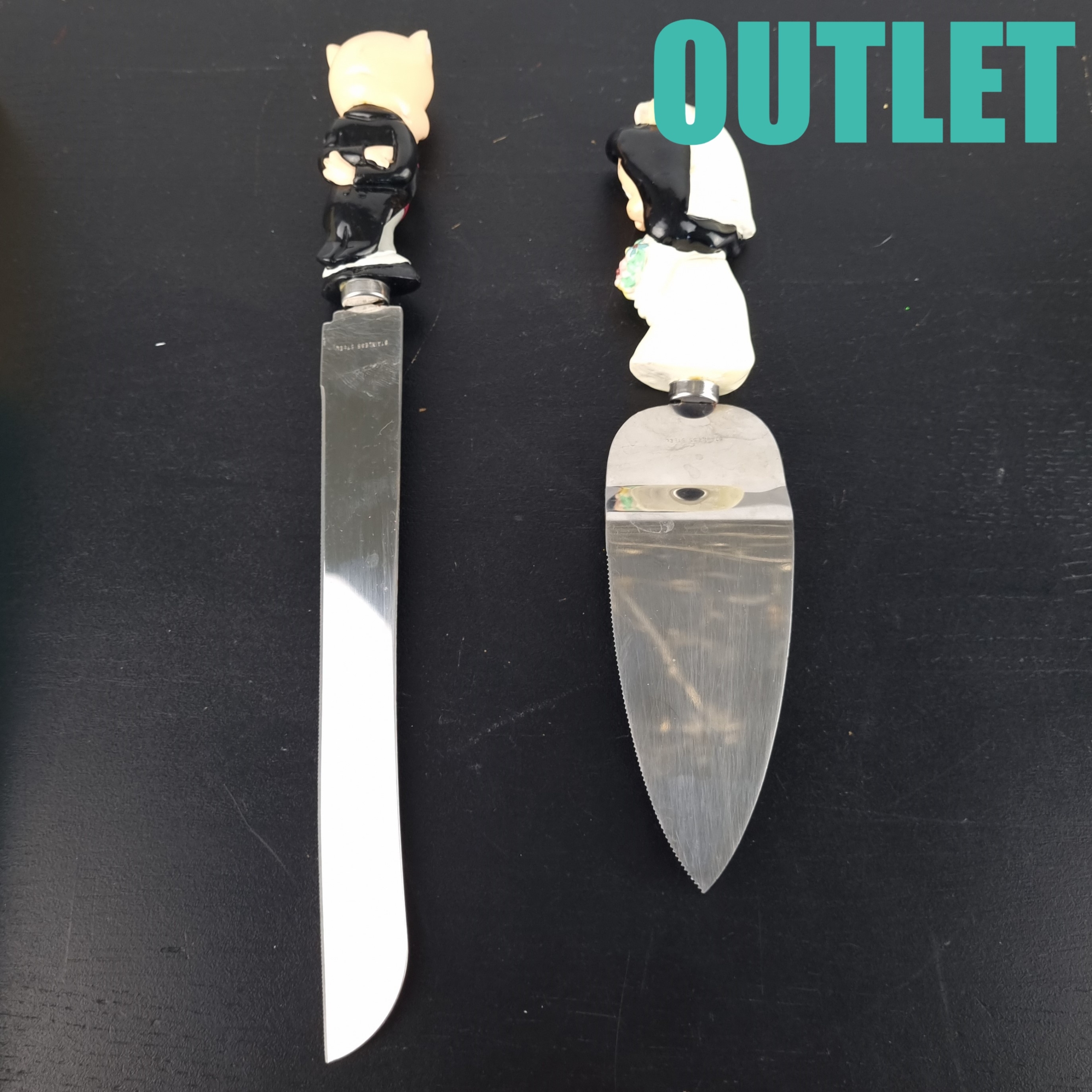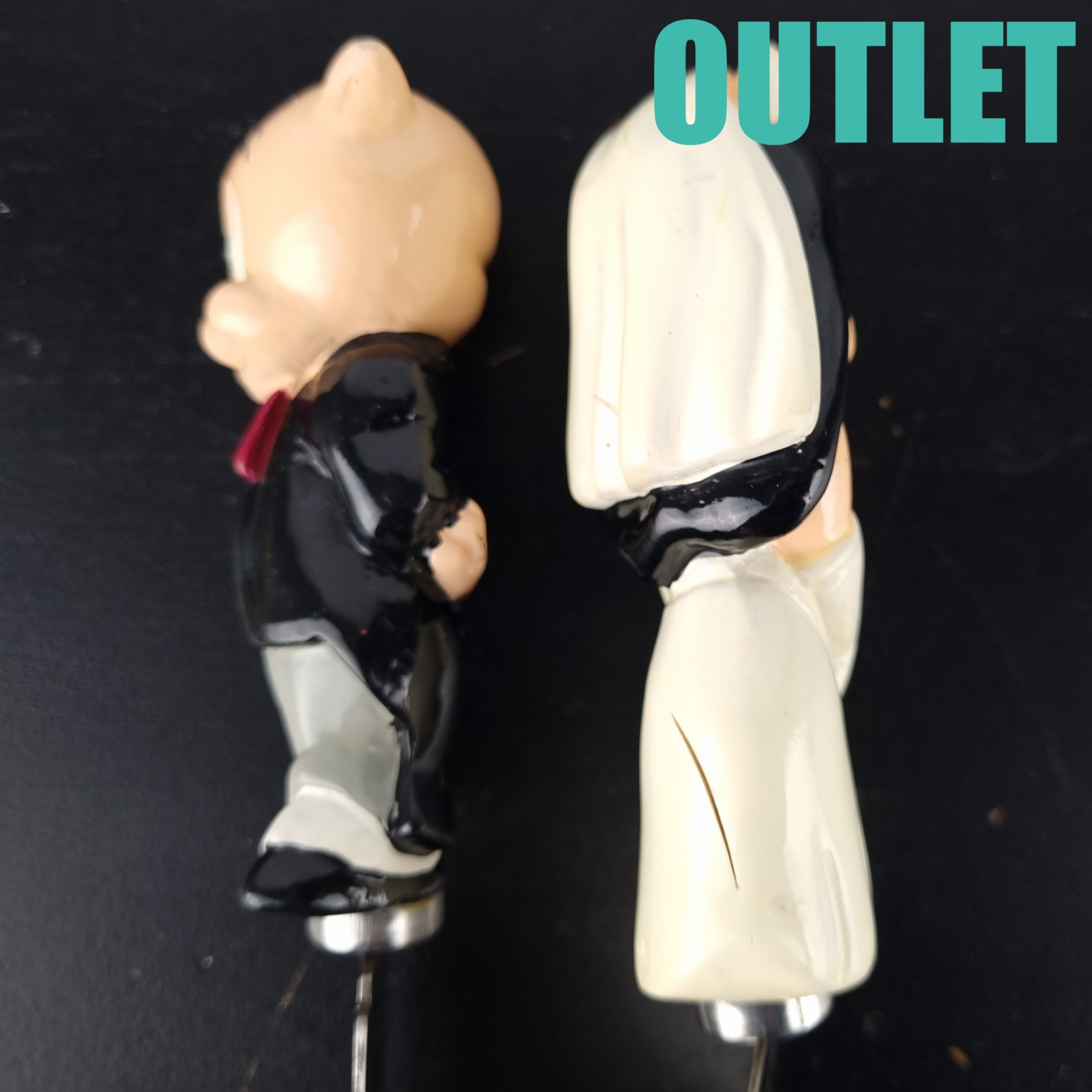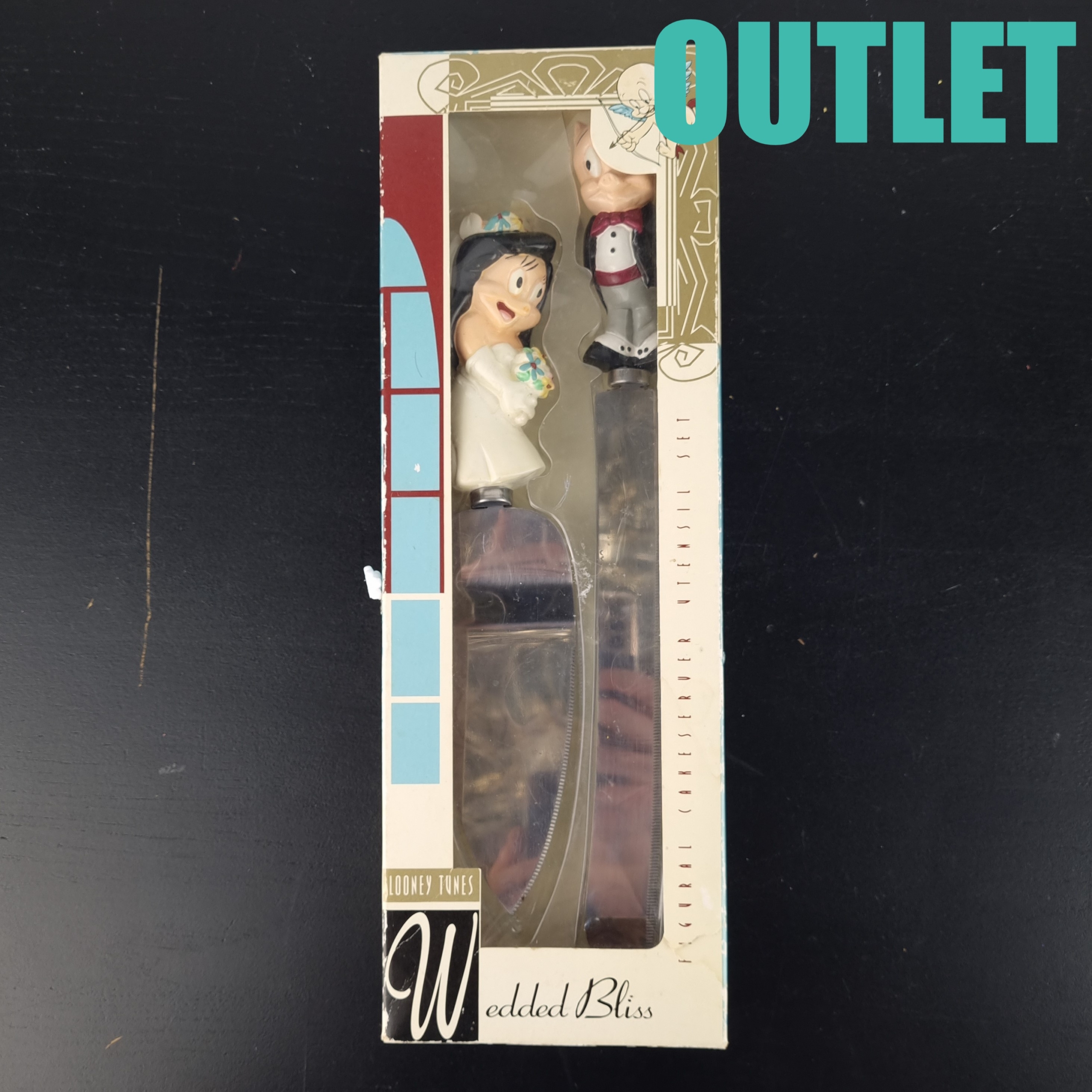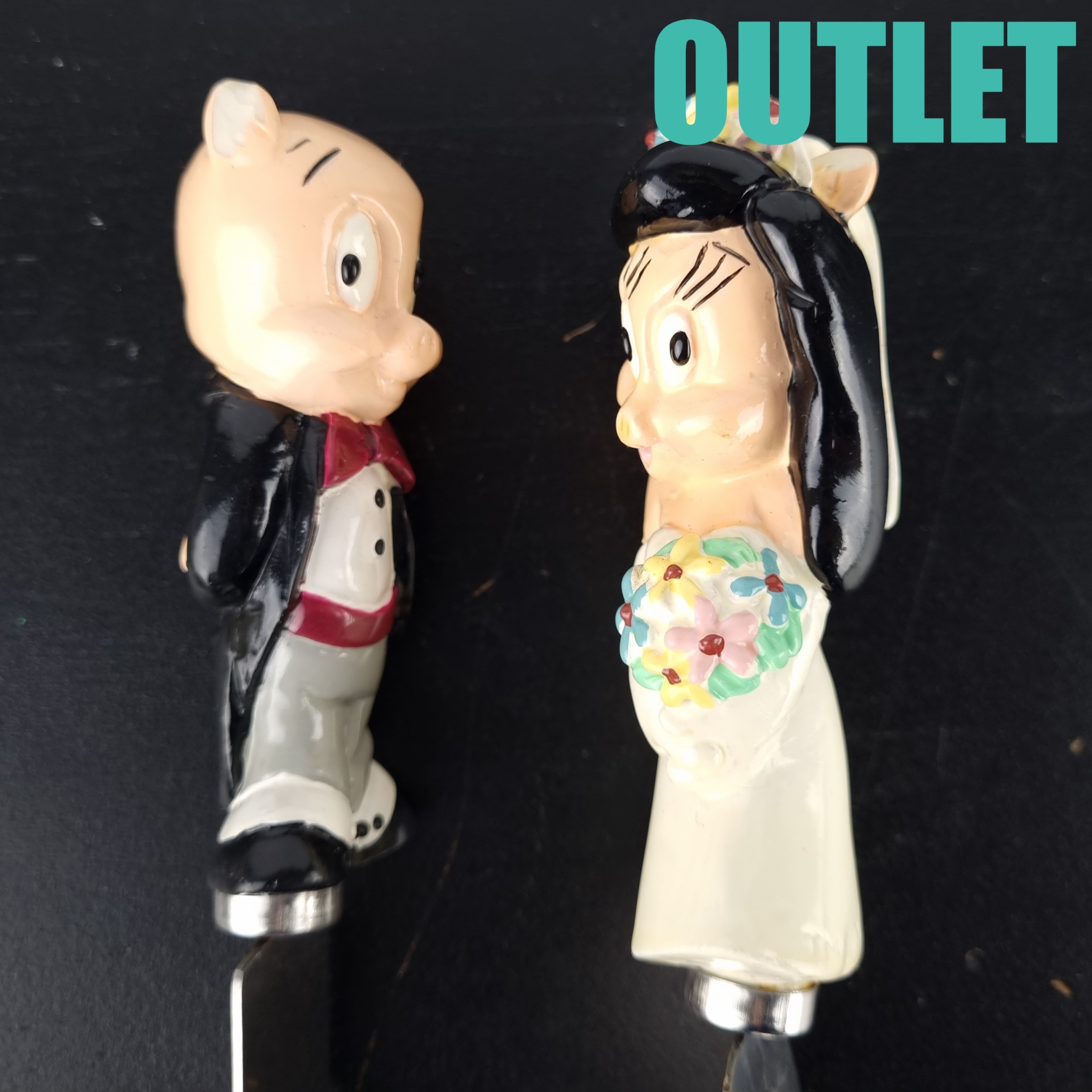 This wedding cutlery set of Porky and Petunia pig is in our outlet category because of some chips and some wear.