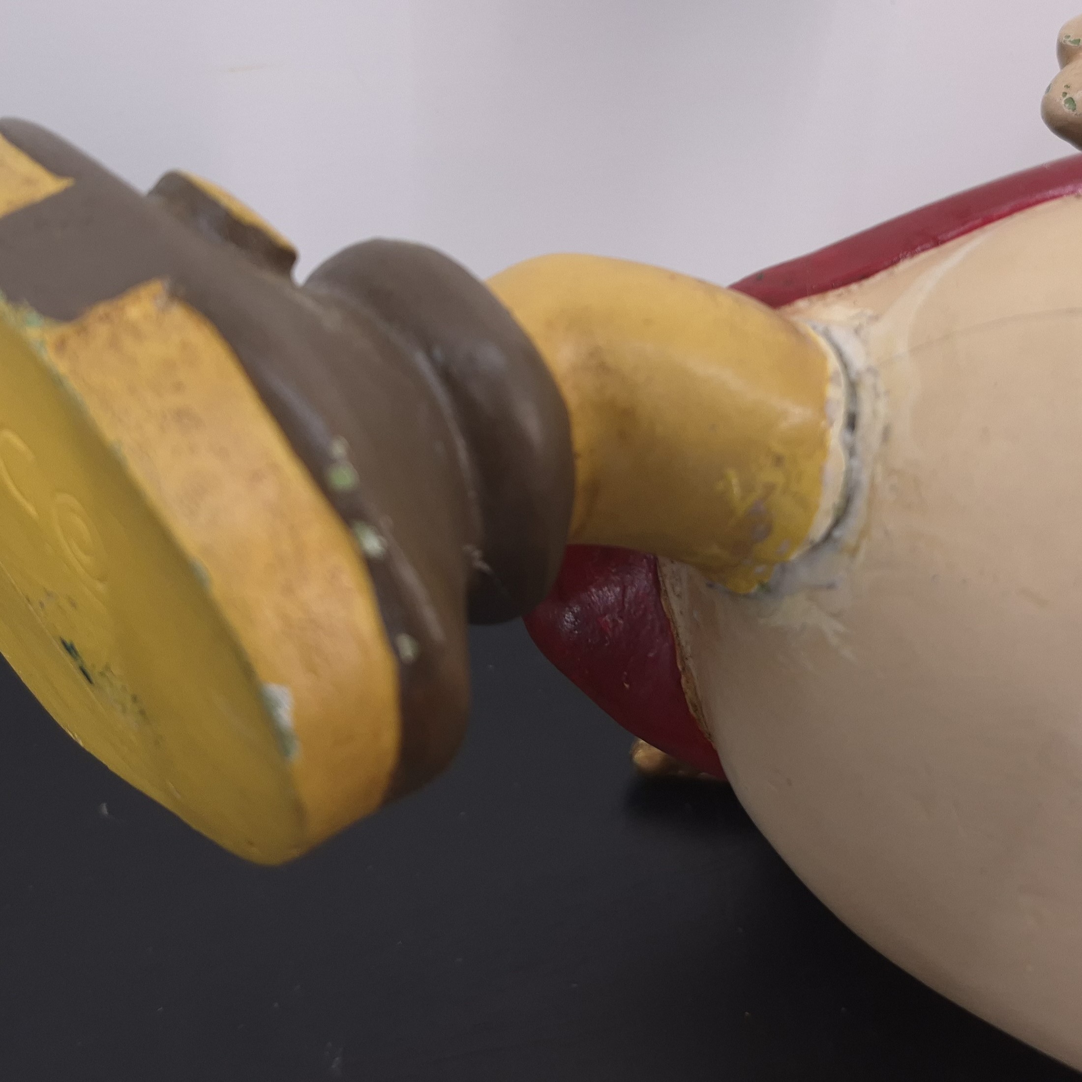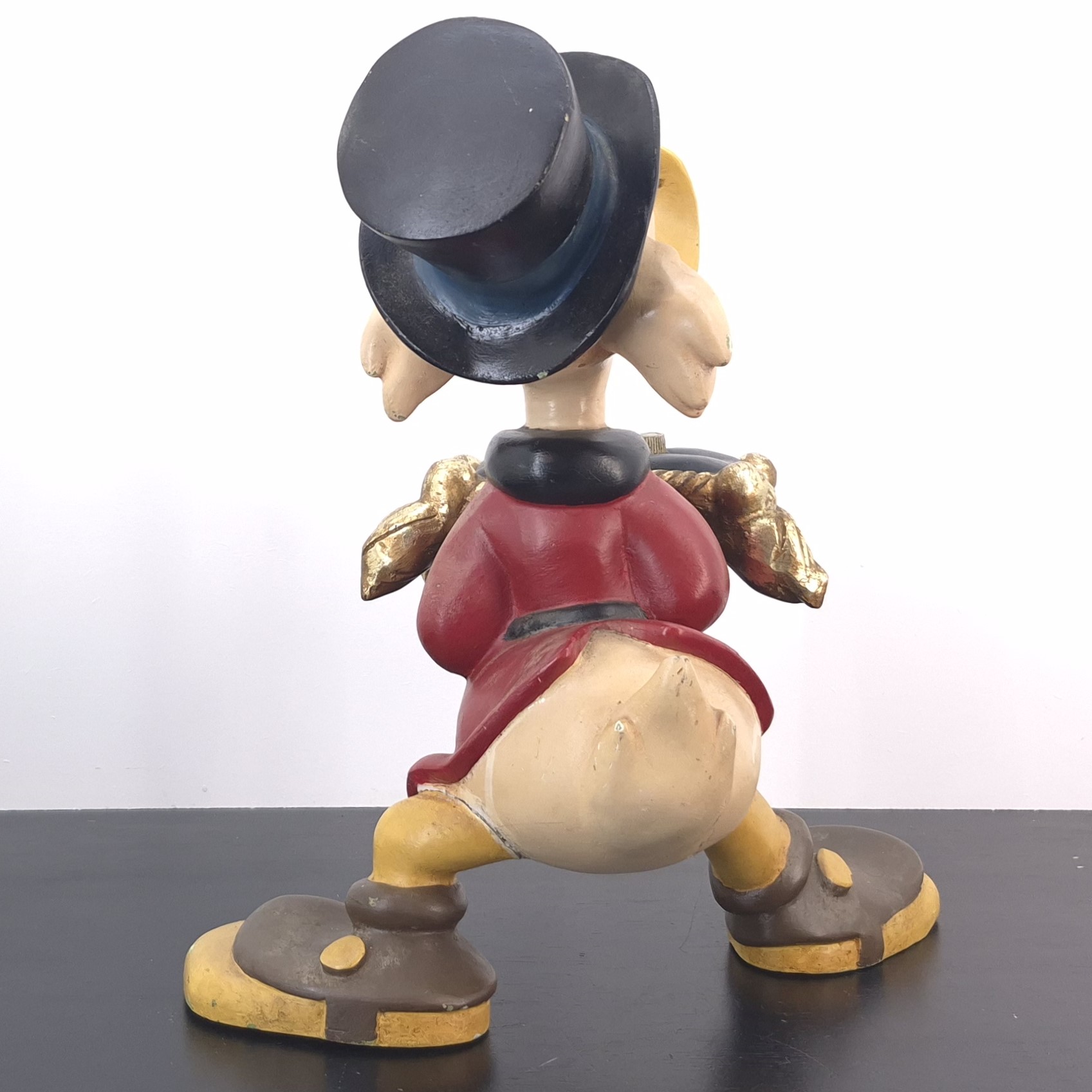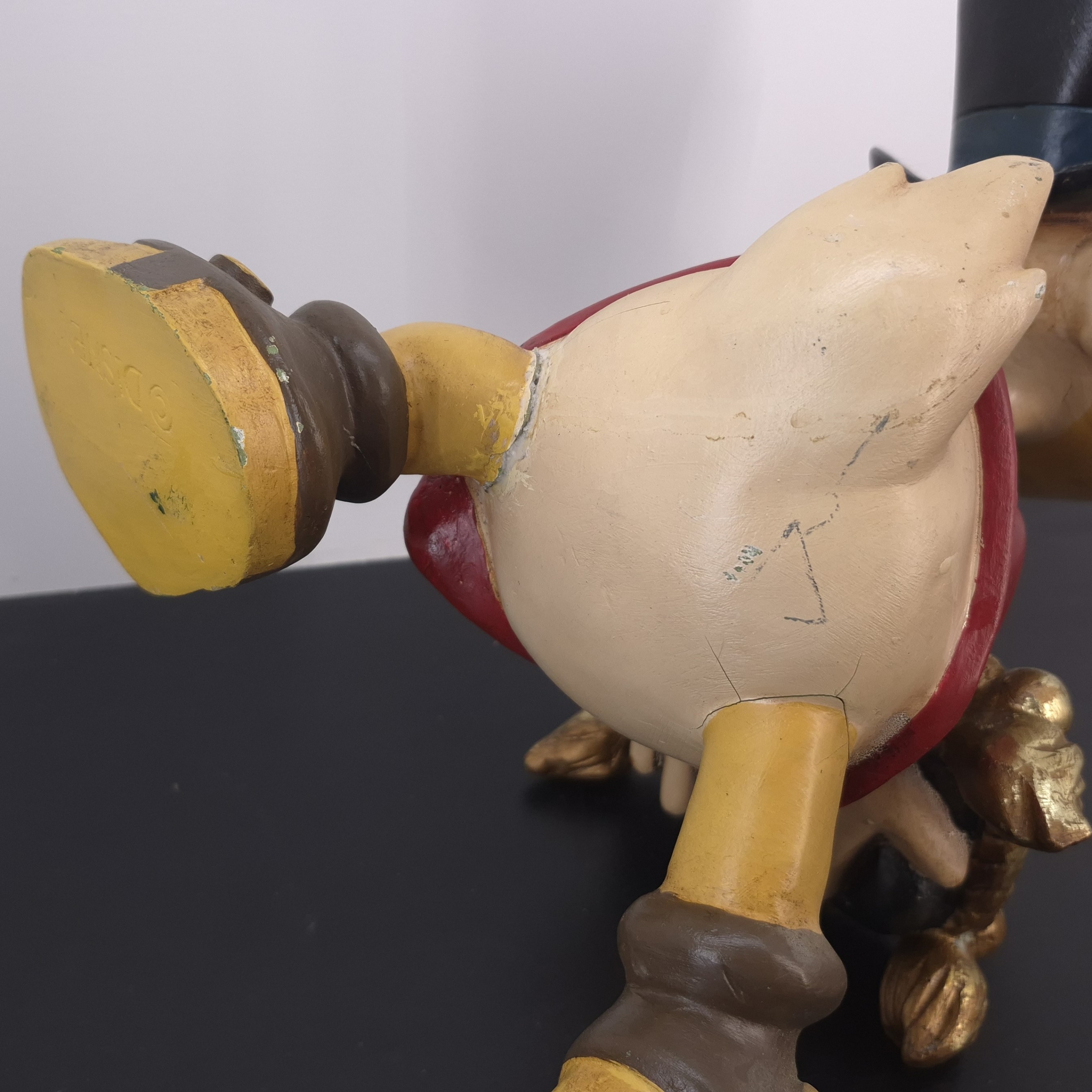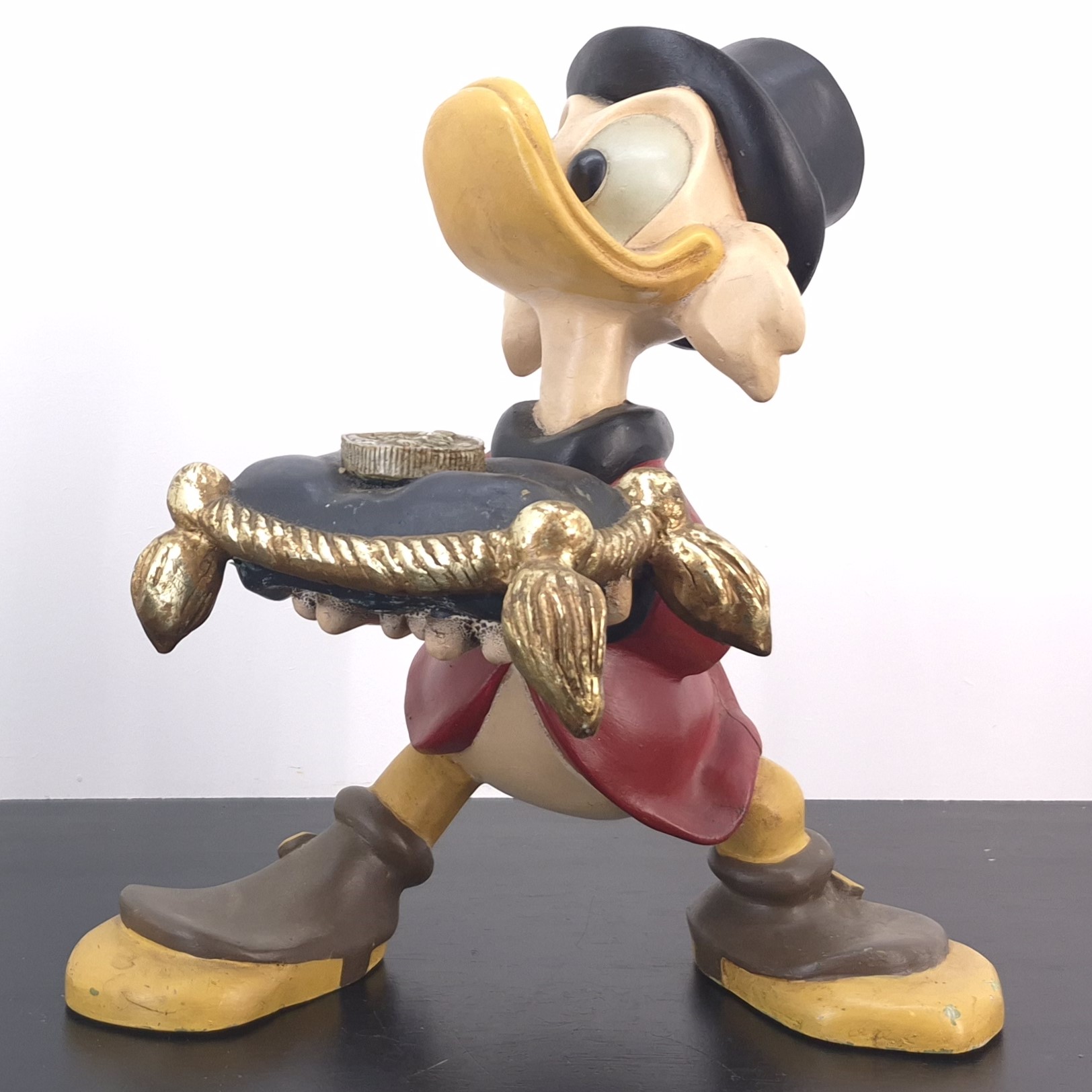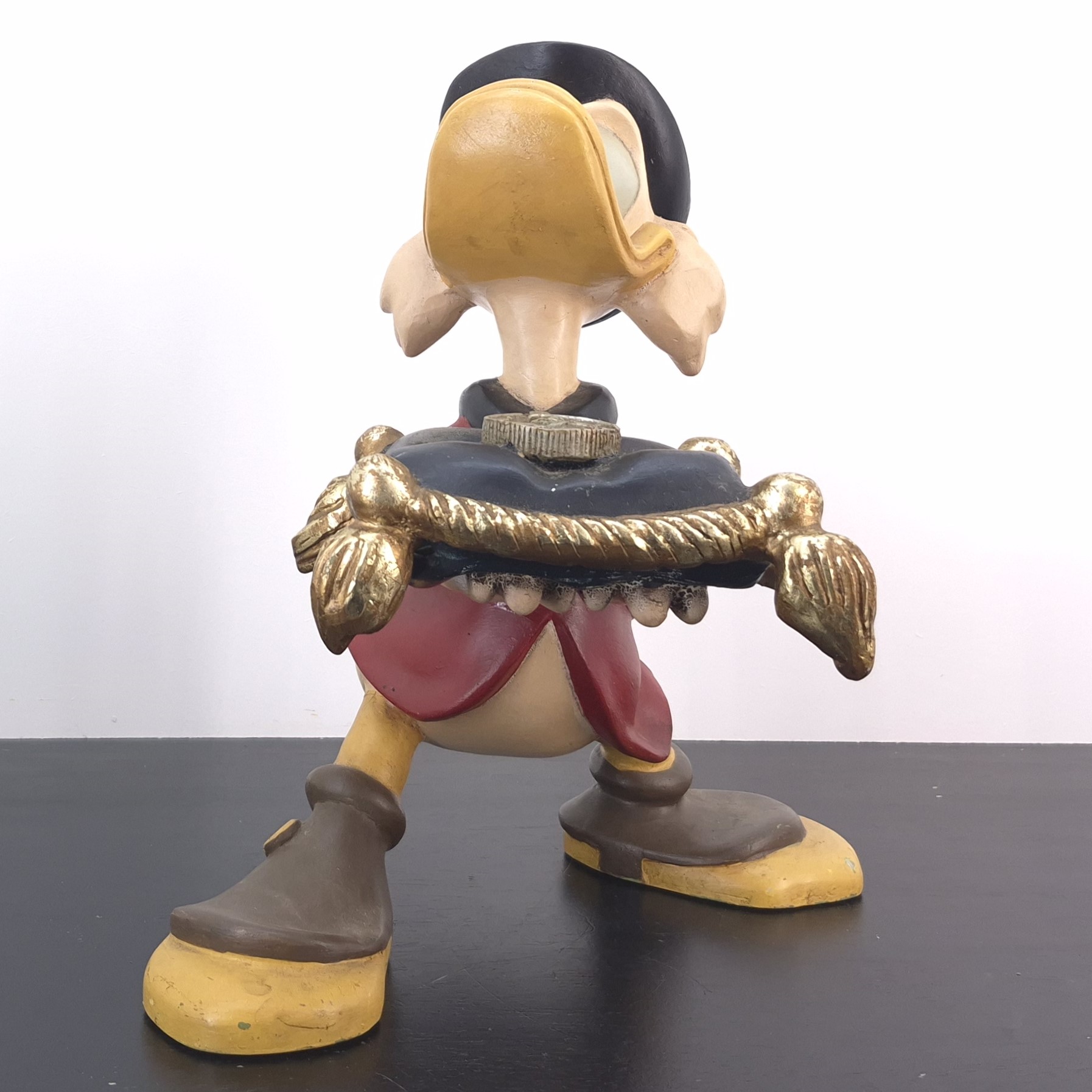 This unique statue from Scrooge McDuck was sculpted by Stefan Toth under Walt Disney’s license. Dates back to the 1980s. Made from durable polyester, it remains in used condition. Outlet items may show noticeable wear. That’s why we’ve priced them to match—great value, no surprises.