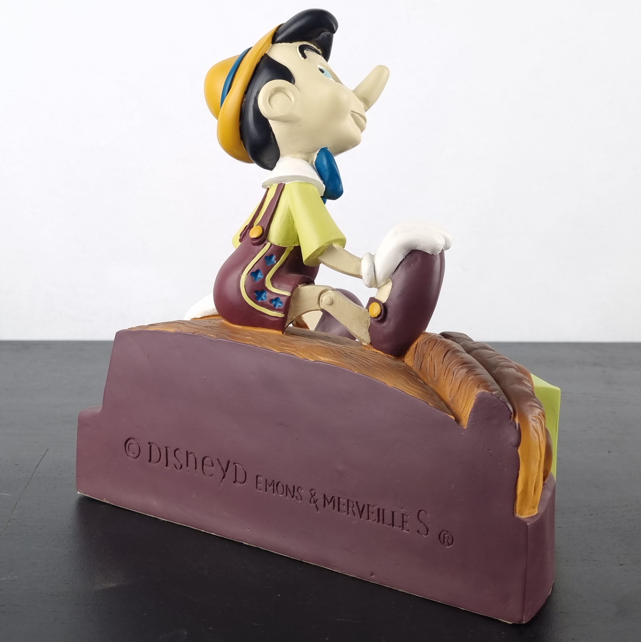 Approximately late 90’s, early 00’s Demons and Merveilles created a line of statues from Walt Disney characters. A part of this line where statues with a flat back. This way you could put the statues against the wall. These statues where made from characters as Goofy, Mickey Mouse, Donald Duck, Mowgli and Baloo and Pinocchio. All the statues of these characters where created in the same basic design as Pinocchio. But off course with their own creative display.