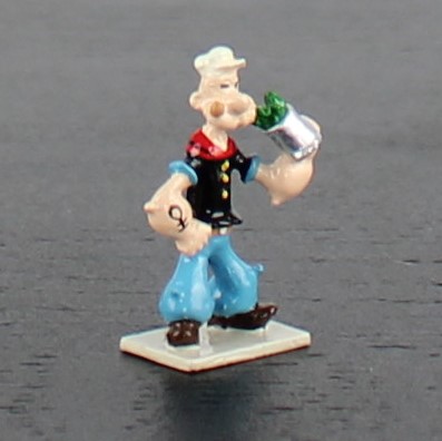 This vintage Popeye collectible is approximately 5 cm tall, crafted from durable metal.