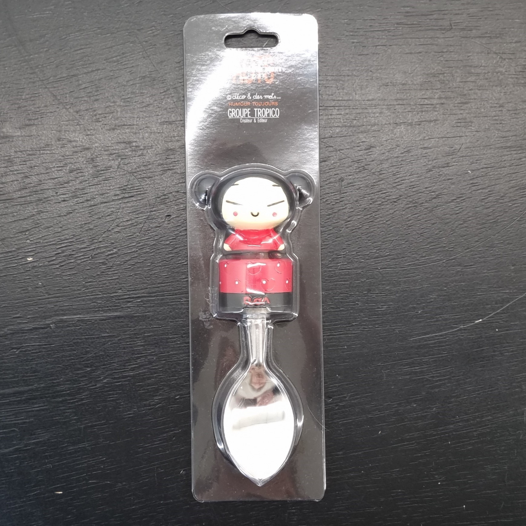 Vintage Pucca spoon. Tropico Diffusion produced this Pucca collectible in license of VOOZ. The spoon is part of the Avenue of the Stars product line from Tropico Diffusion. The spoon is made from high quality resin and metal. This vintage collectible was produced in the late 1990’s. The spoon is in excellent condition and comes with the original box.