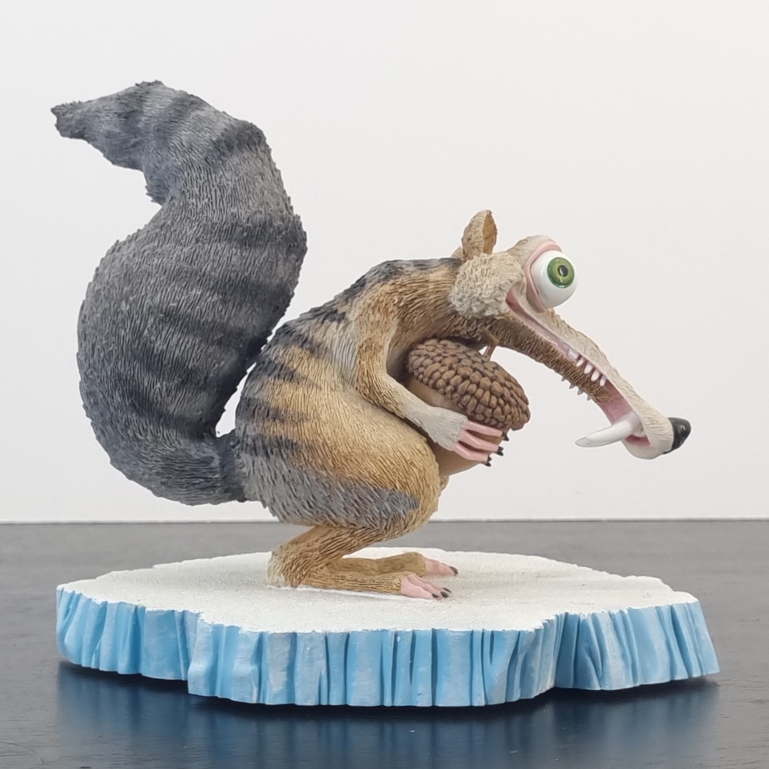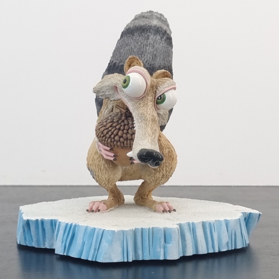 This unique figurine from Scrat was sculpted by Bombyx under Walt Disney’s license. It was taken in production by Attakus. Dates back to 2006. Immerse yourself in the prehistoric fun with the limited edition figurine of Scrat, the saber-toothed squirrel from Ice Age, sculpted by Bombyx and produced by Attakus. This meticulously crafted porcelain statue captures Scrat in his relentless pursuit, acorn in hand, a true testament to the character’s enduring appeal. With only a select number of these collectibles made, it’s a prized possession for any fan.