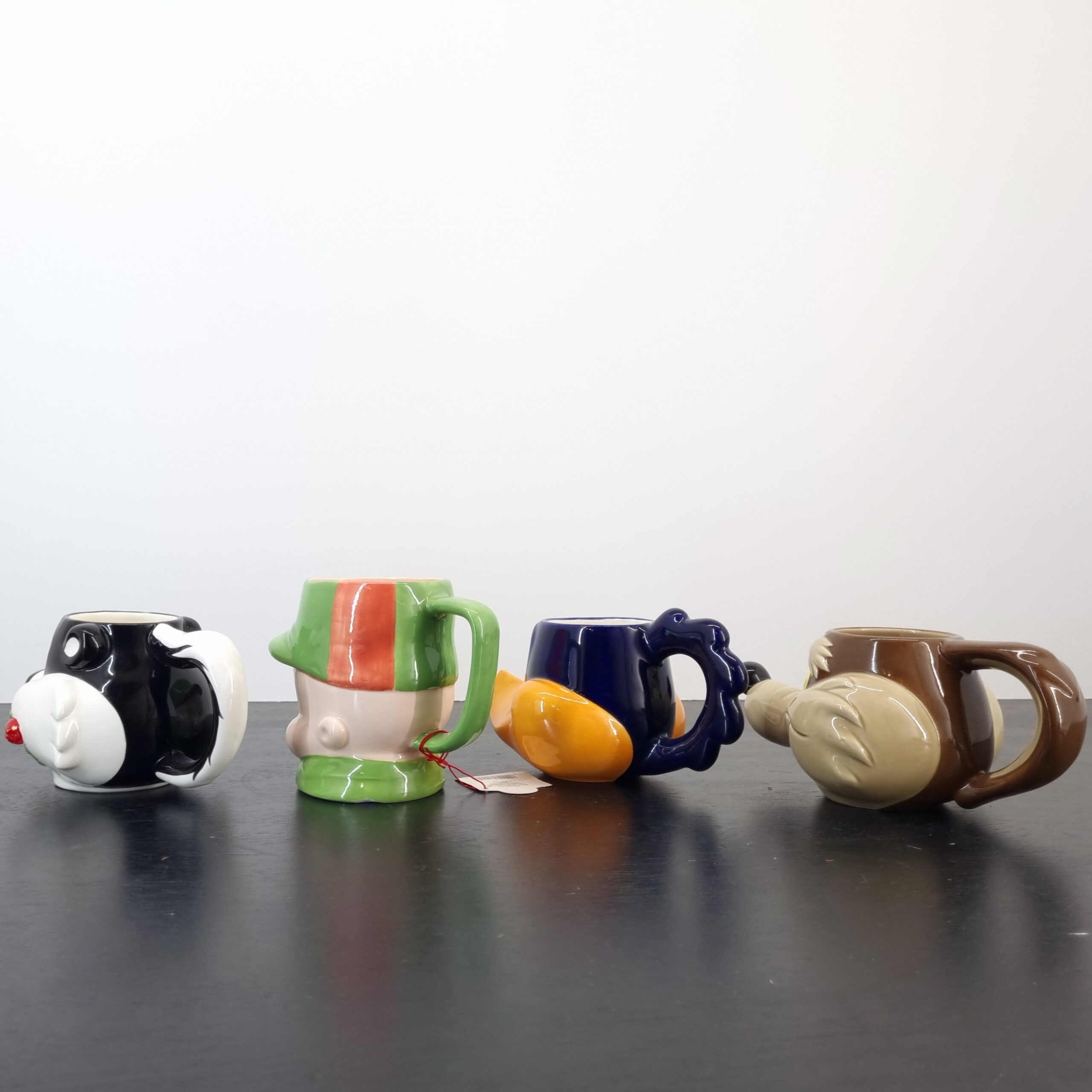 Vintage Set of four Looney Tunes mugs made from ceramic.