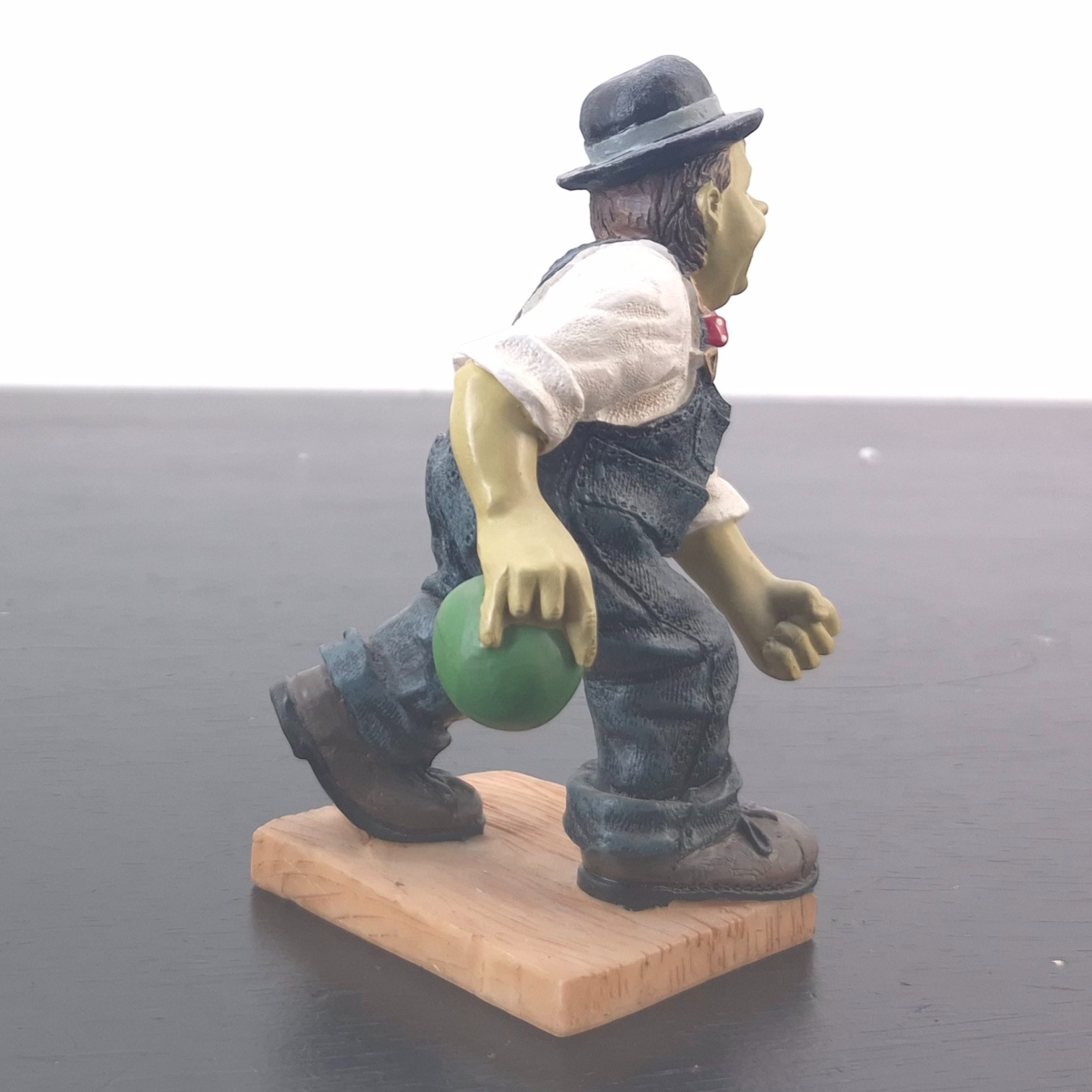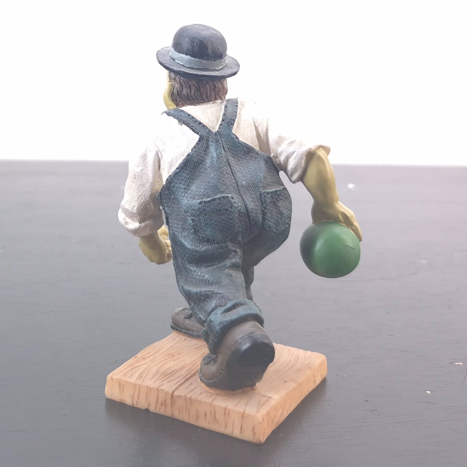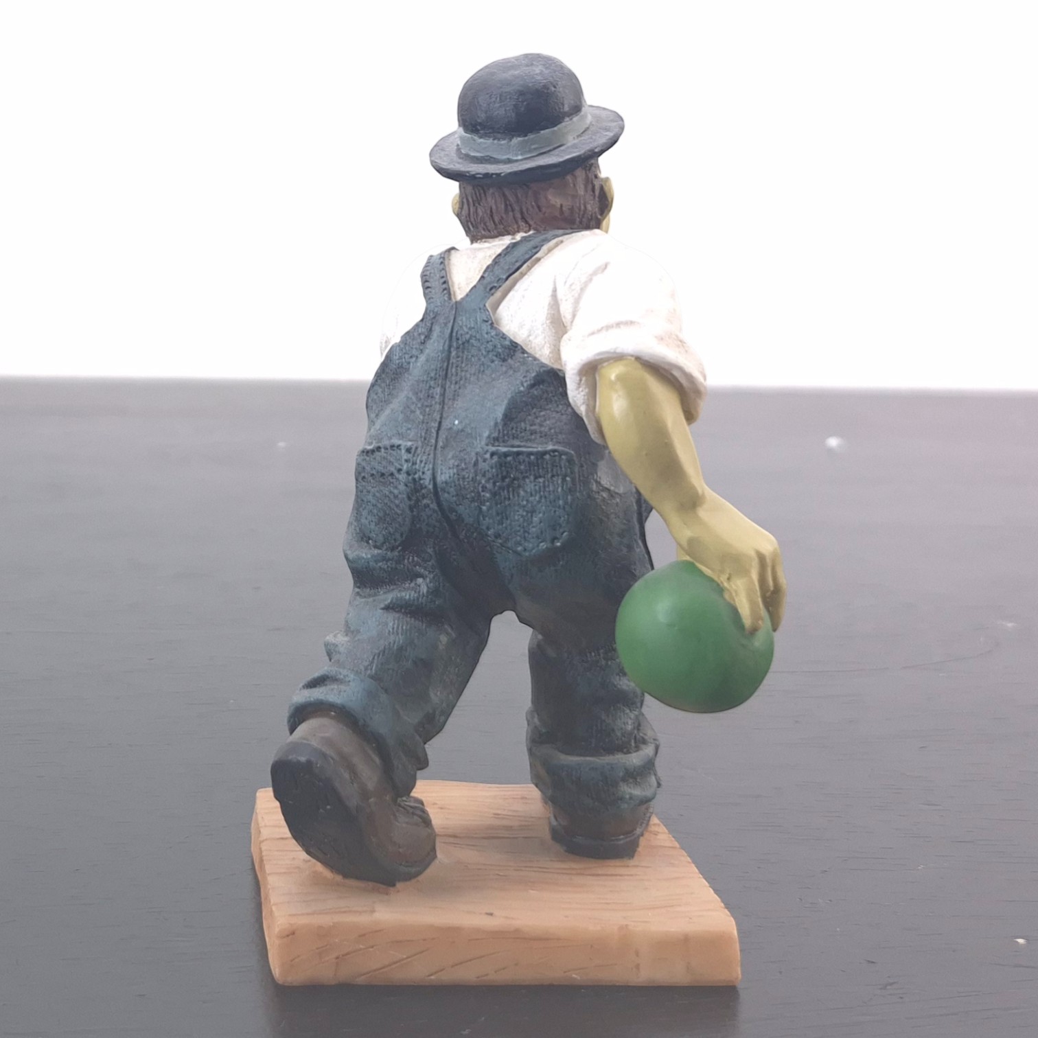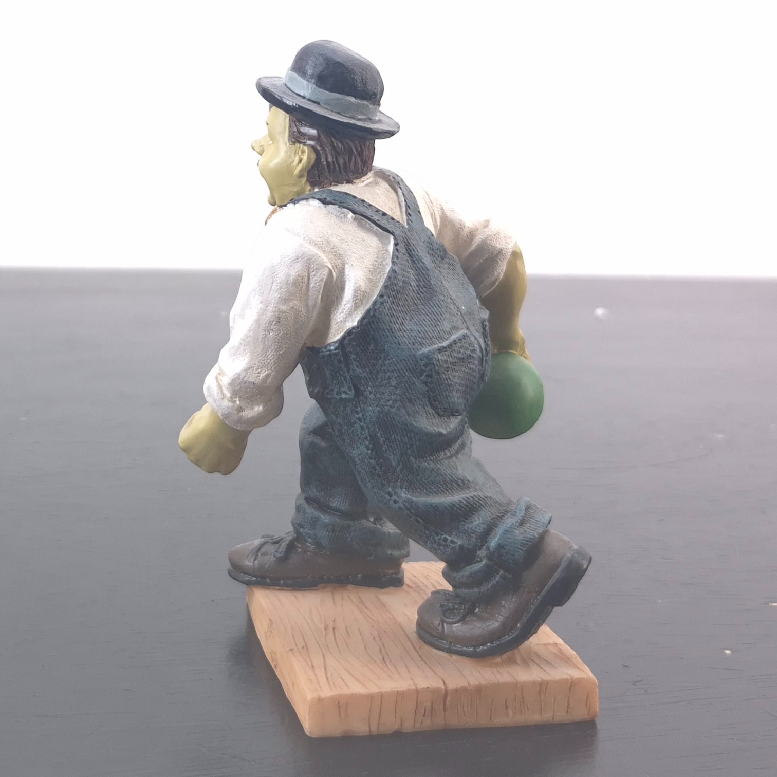This vintage Oliver Hardy figurine was sculpted under license from Larry Harmon Pictures Corporation. Dates back to the 1990s. Made from durable resin, it remains in excellent condition. Oliver Norvell Hardy carefully preparing to roll a bowling ball, his posture full of confidence and quiet determination. Hardy’s composed expression and deliberate stance perfectly reflect his self-assured personality, even in situations destined to go wrong. The sculpt highlights his iconic bowler hat, formal shirt, bow tie, and oversized overalls, ensuring immediate recognition.
