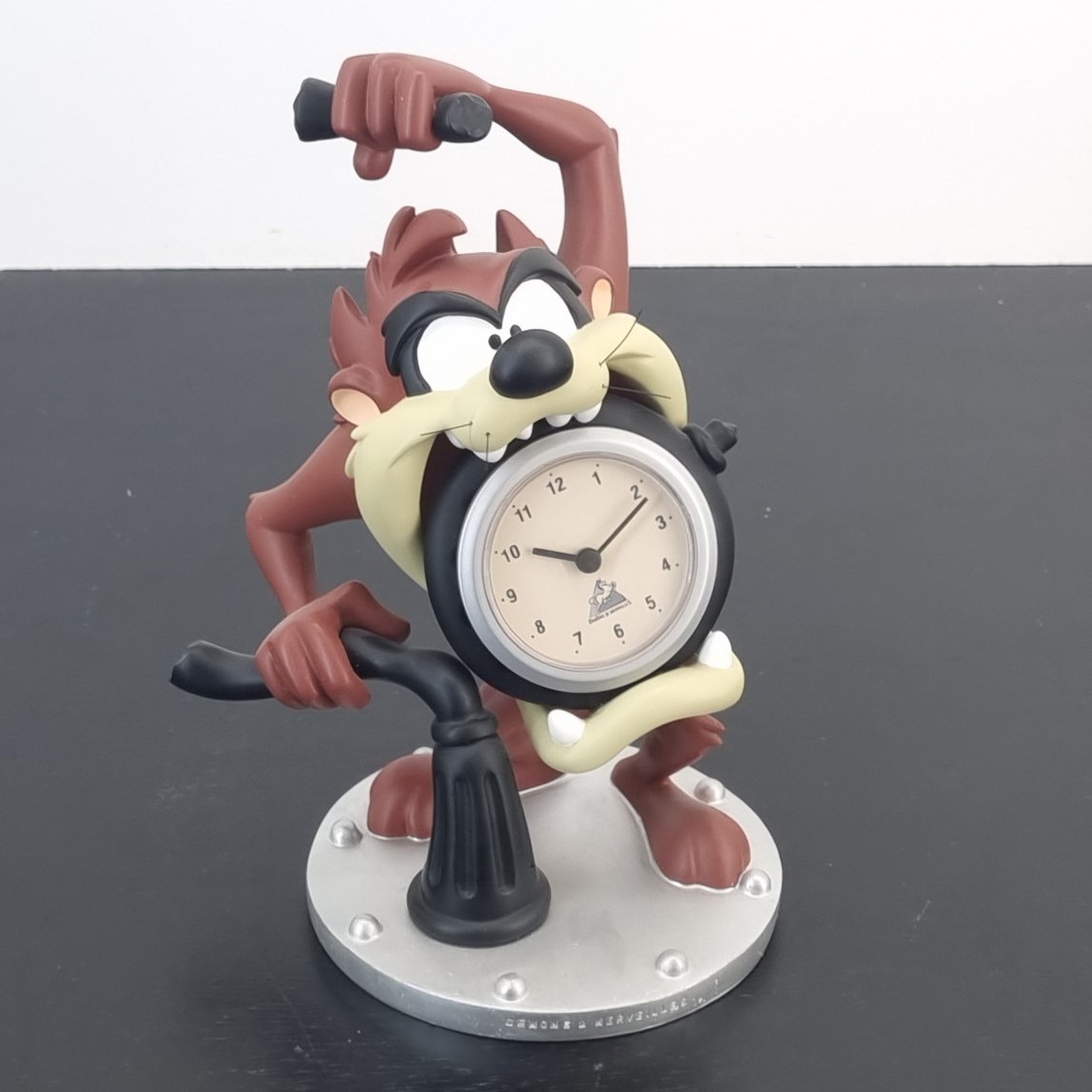 Vintage Tasmanian Devil clock. Demons and Merveilles produced this impressive Tasmanian Devil table clock in license of Warner Bros. This collectible Looney Tunes table clock is made from high quality resin. This vintage Tasmanian Devil collectible was produced in the year 2003. The clock is in excellent and working condition and comes with the original box.