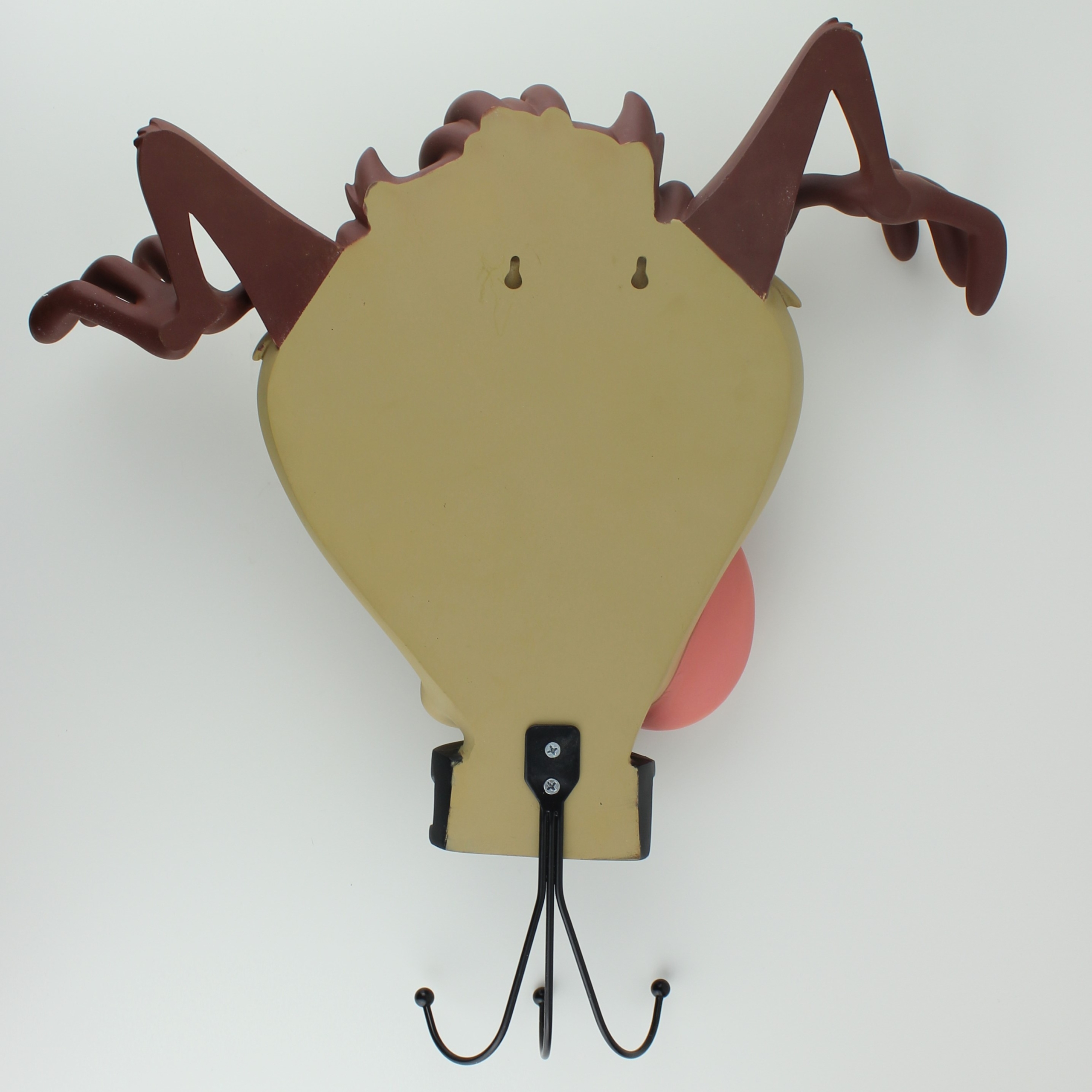 This coat rack from Tasmanian Devil was sculpted by Peter Mook under Warner Bros.’ license. It was taken in production by Rutten. Dates back to 2000. Crafted from durable resin, it remains in excellent condition. Bring a whirlwind of fun to your space with this dynamic coat rack featuring the Tasmanian Devil, aka Taz! With his tongue hanging out and arms raised, Taz is ready for action and mischief. Perfect for any fan, this functional piece adds a touch of playful chaos and classic cartoon charm to your home. Organize in style with Taz’s wild energy!