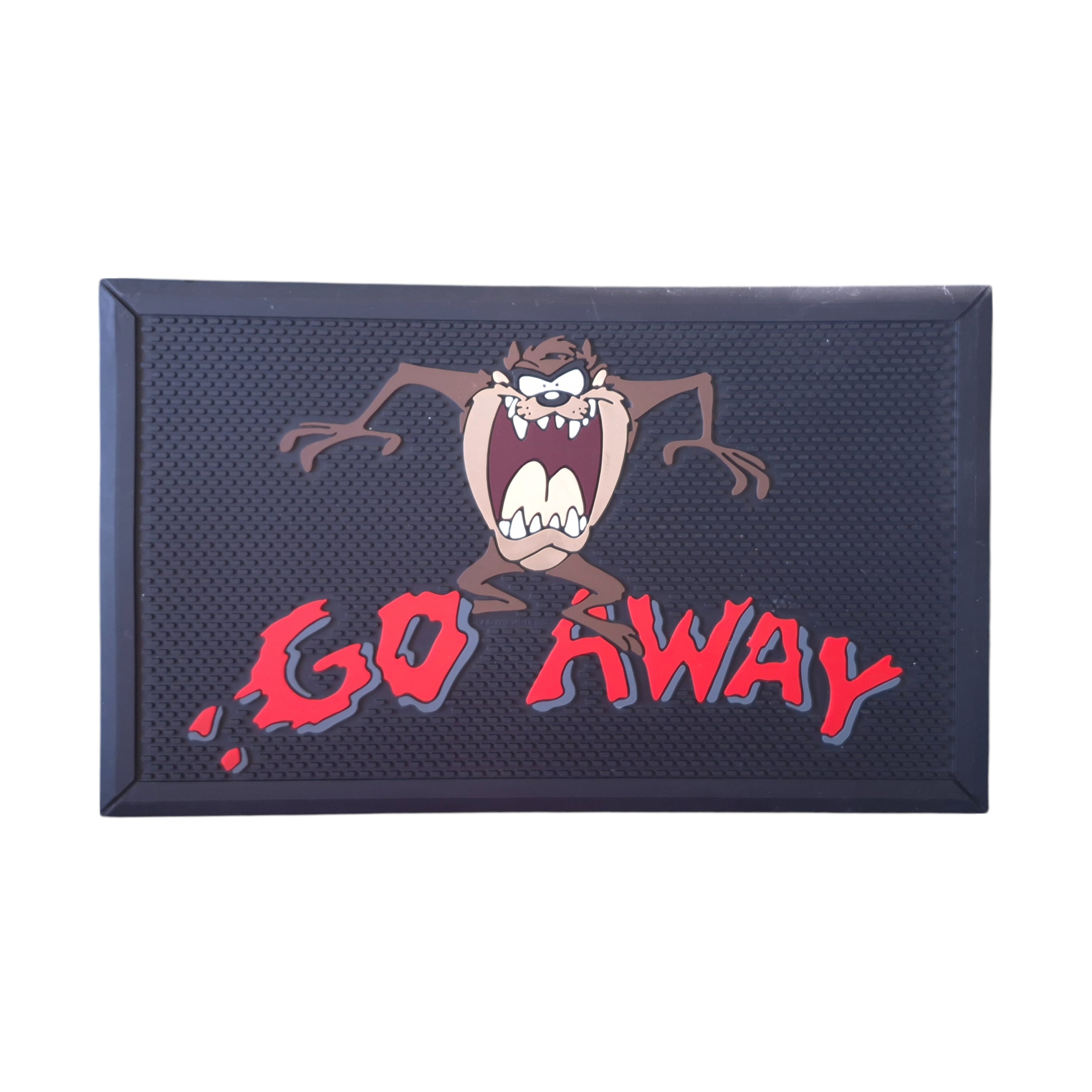 This vintage doormat from the Tasmanian Devil was produced under Warner Bros.’ license. Dates back to 1992. Crafted from durable rubber, it remains in very good condition. Add a wild dose of Looney Tunes attitude to your entryway with this Tasmanian Devil “Go Away” Doormat. Featuring Taz in full fury and bold red lettering that makes your message loud and clear, this durable mat brings cartoon mischief with a functional twist. Made from sturdy, textured rubber, it’s perfect for keeping dirt out—and uninvited guests too! A must-have for fans who love their humor a little untamed.