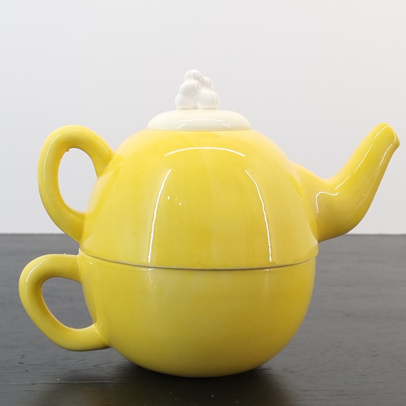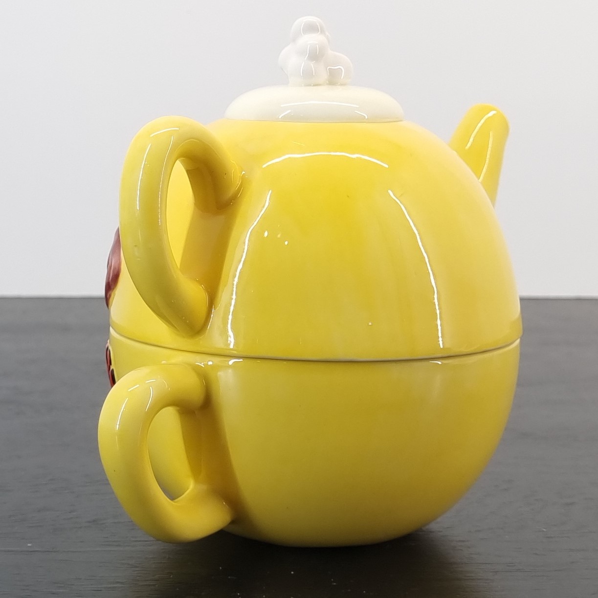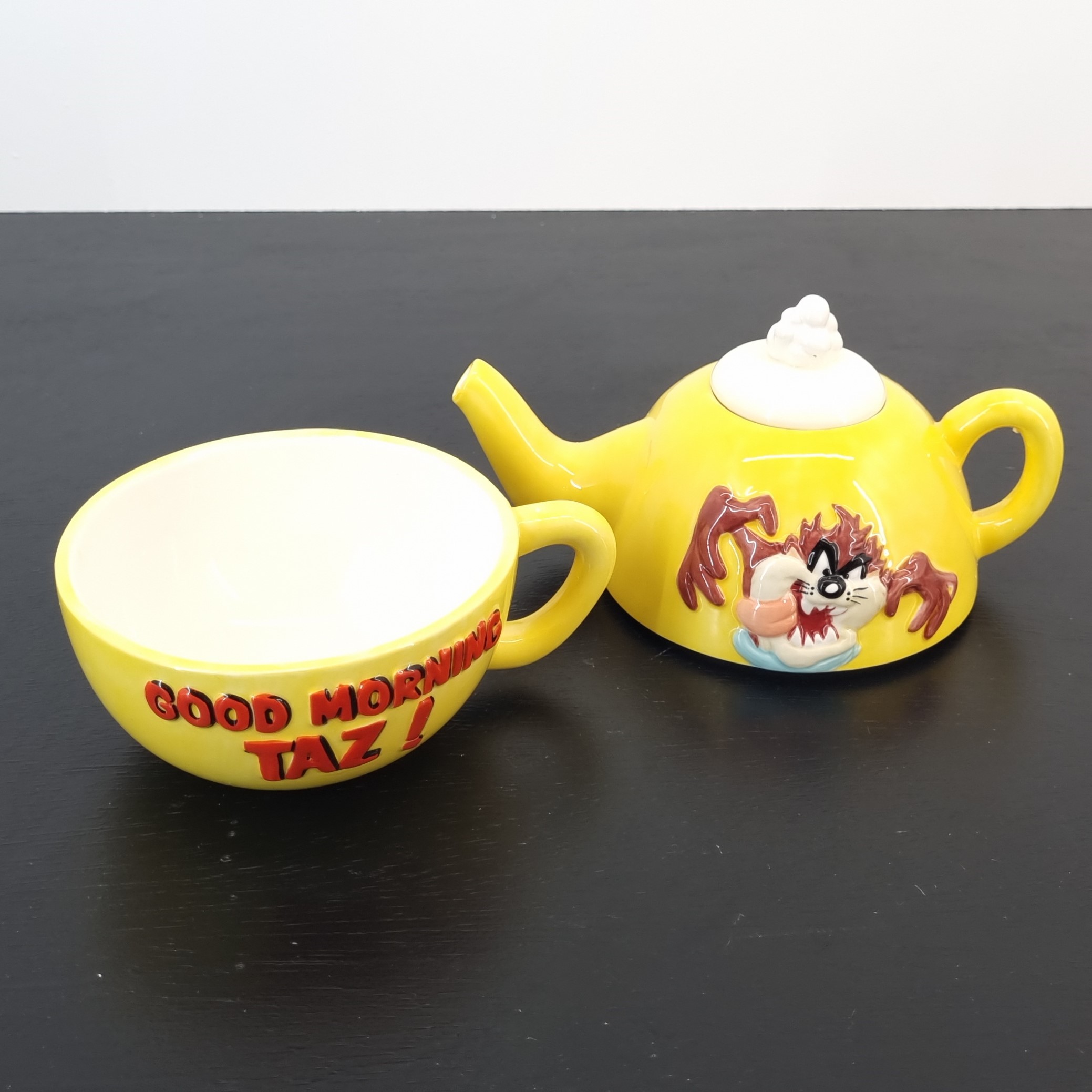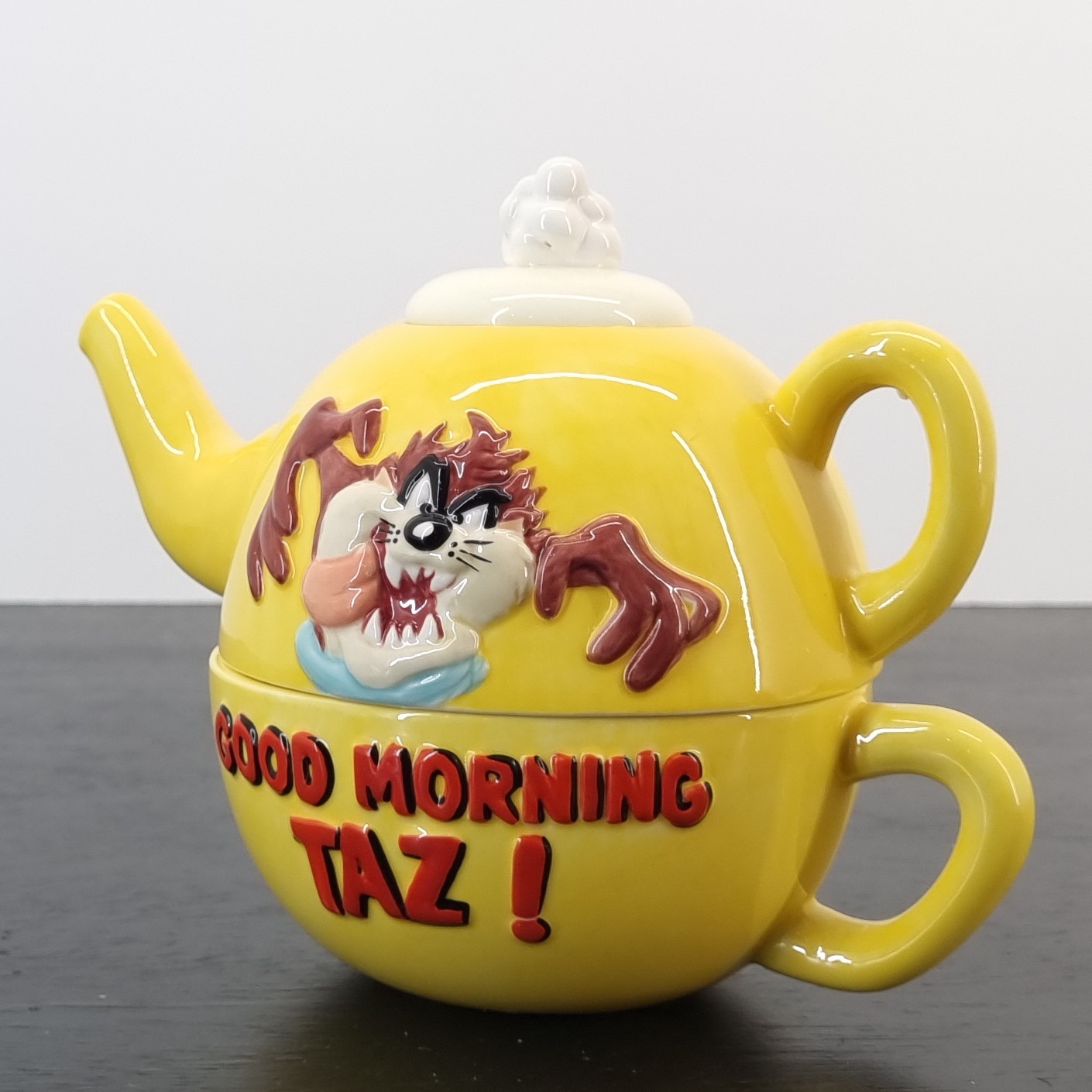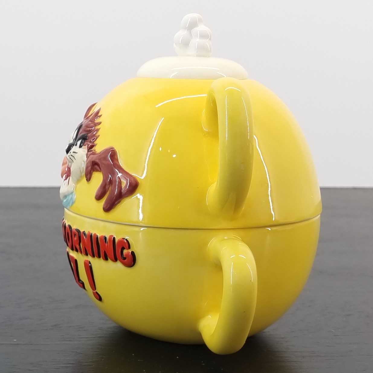 Enjoy your cup of tea (or coffee) with this rare, collectible tea pot of Tasmanian Devil. The upper half is the tea pot and the under half is the mug. A perfect combination.