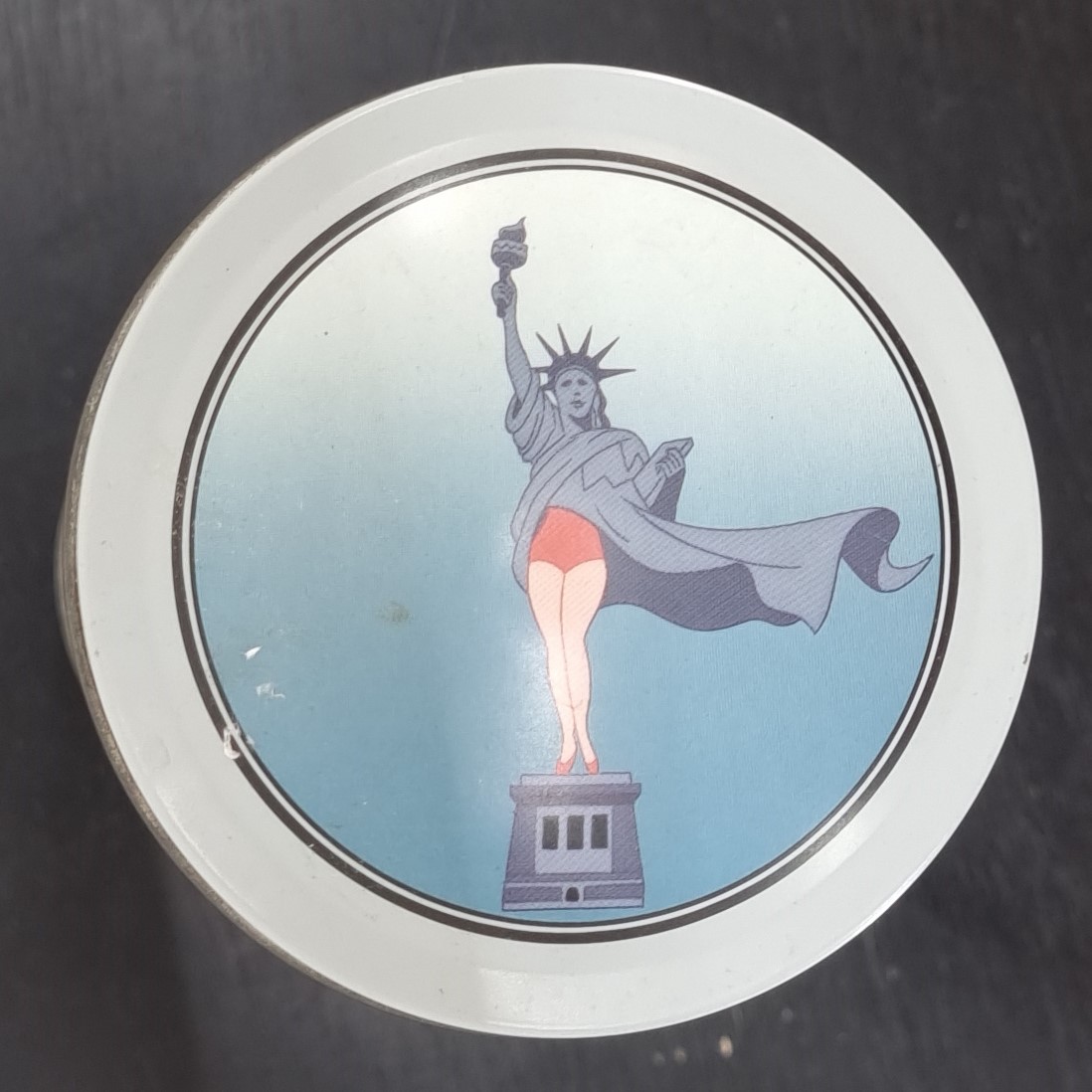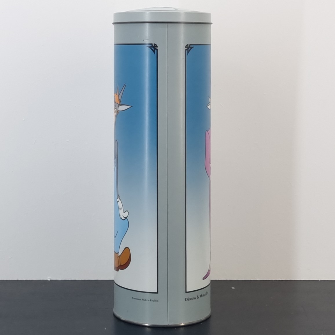 A vintage canister featuring Wolf and Dixie Wolf, crafted by Demons and Merveilles under Turner Entertainments’ license. Dates back to 1992. Made from durable metal, it remains in very good condition. Add a bold twist to your collection with this vintage canister featuring the iconic Wolf and Dixie Wolf on the sides! Topped with a playful Statue of Liberty whose skirt is caught in the wind, revealing cheeky red shorts and matching pumps, it’s a conversation starter with attitude. The design blends classic cartoon charm with unexpected humor. Perfect for collectors or anyone who loves a dash of vintage fun. This canister doesn’t just store—it steals the show!