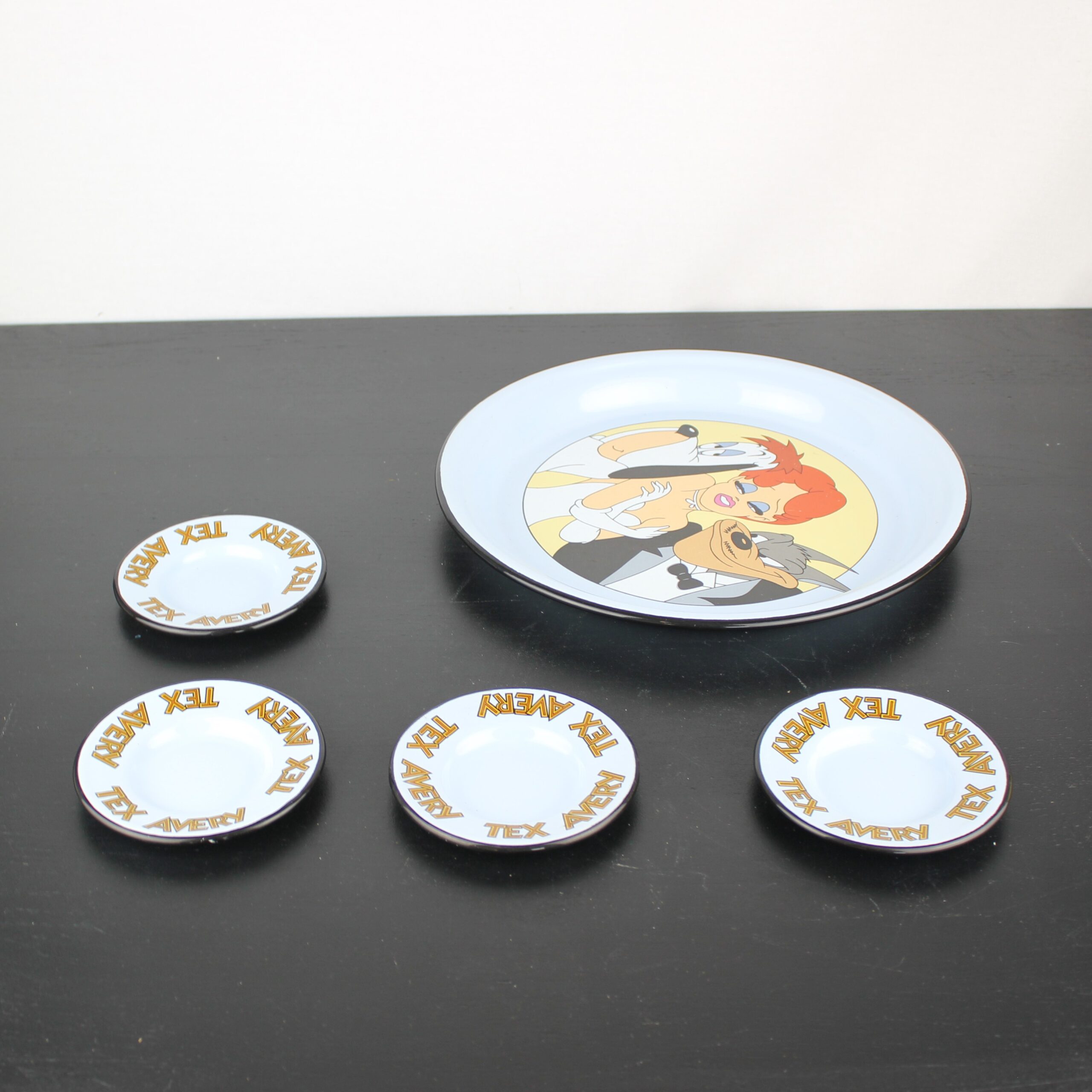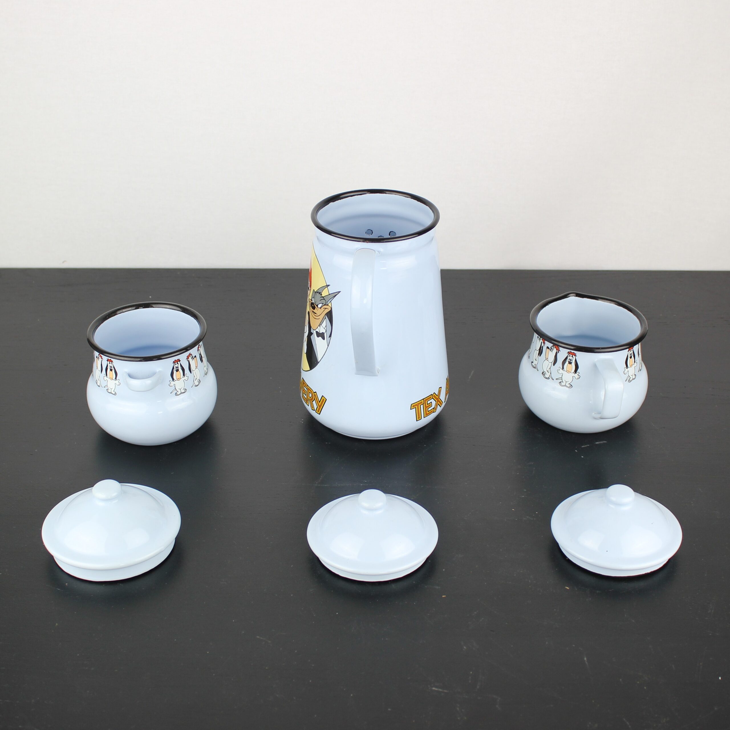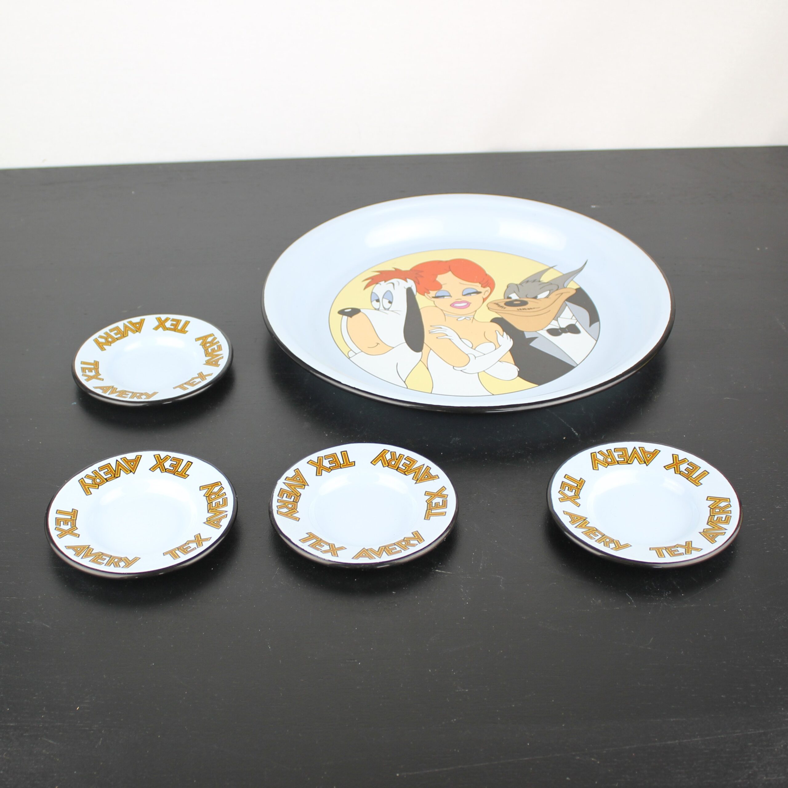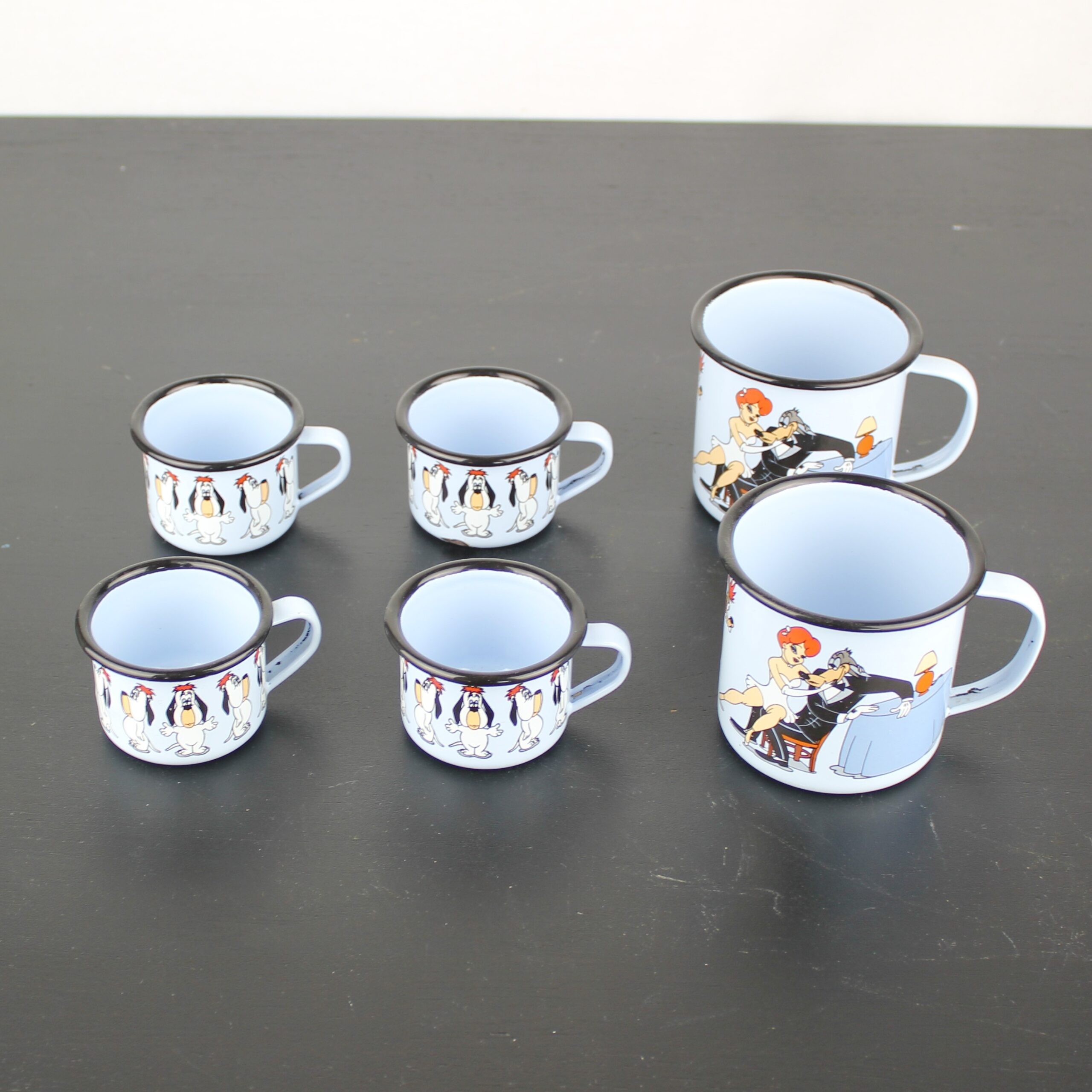 A unique and vintage set of enamel tableware from Tex Avery. For every collector and lover of Tex Avery and/or tableware this is a must have.