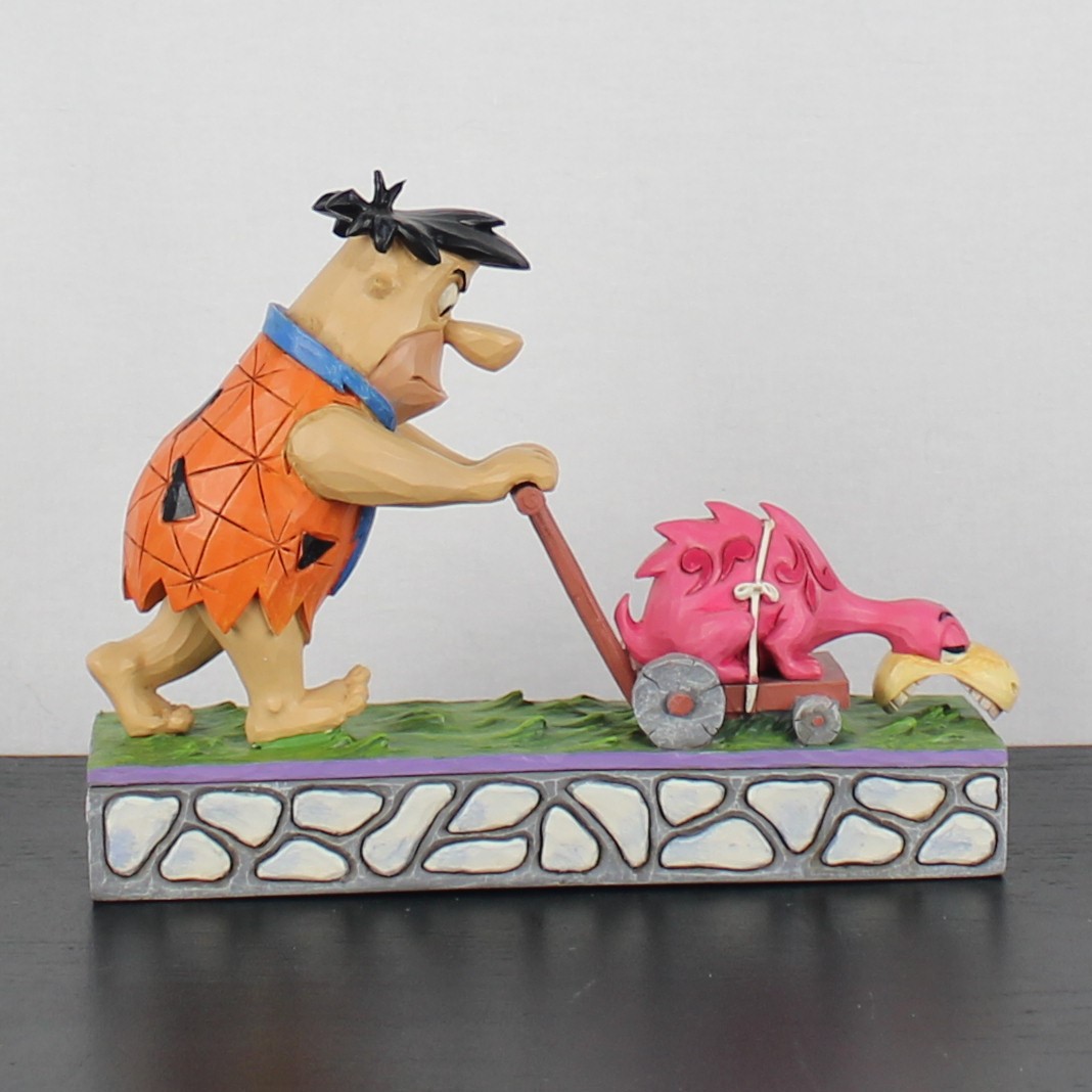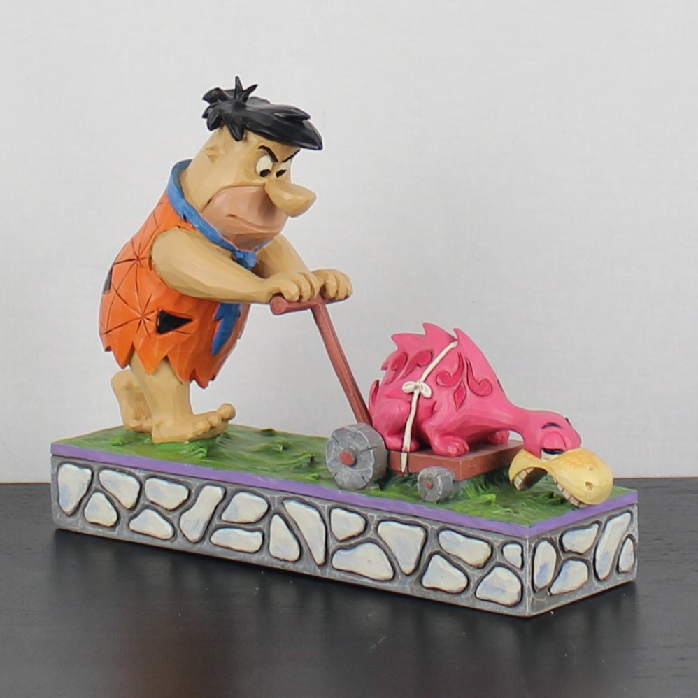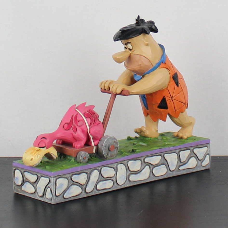 This unique figurine from Fred Flintstone was sculpted by Jim Shore under Hanna-Barbera’s license. It was taken in production by Enesco for their Traditions collection. Dates back to 2017. Crafted from durable stone resin, it remains in excellent condition. Bring a touch of prehistoric fun to your collection with “Mower-a-saurus,” featuring Fred Flintstone mowing the grass Flintstone-style with a dinosaur! Perfect for fans of the classic cartoon, this whimsical statue captures Fred’s inventive spirit and the playful charm of Bedrock. It’s a delightful and unique addition that will surely stand out in any display.