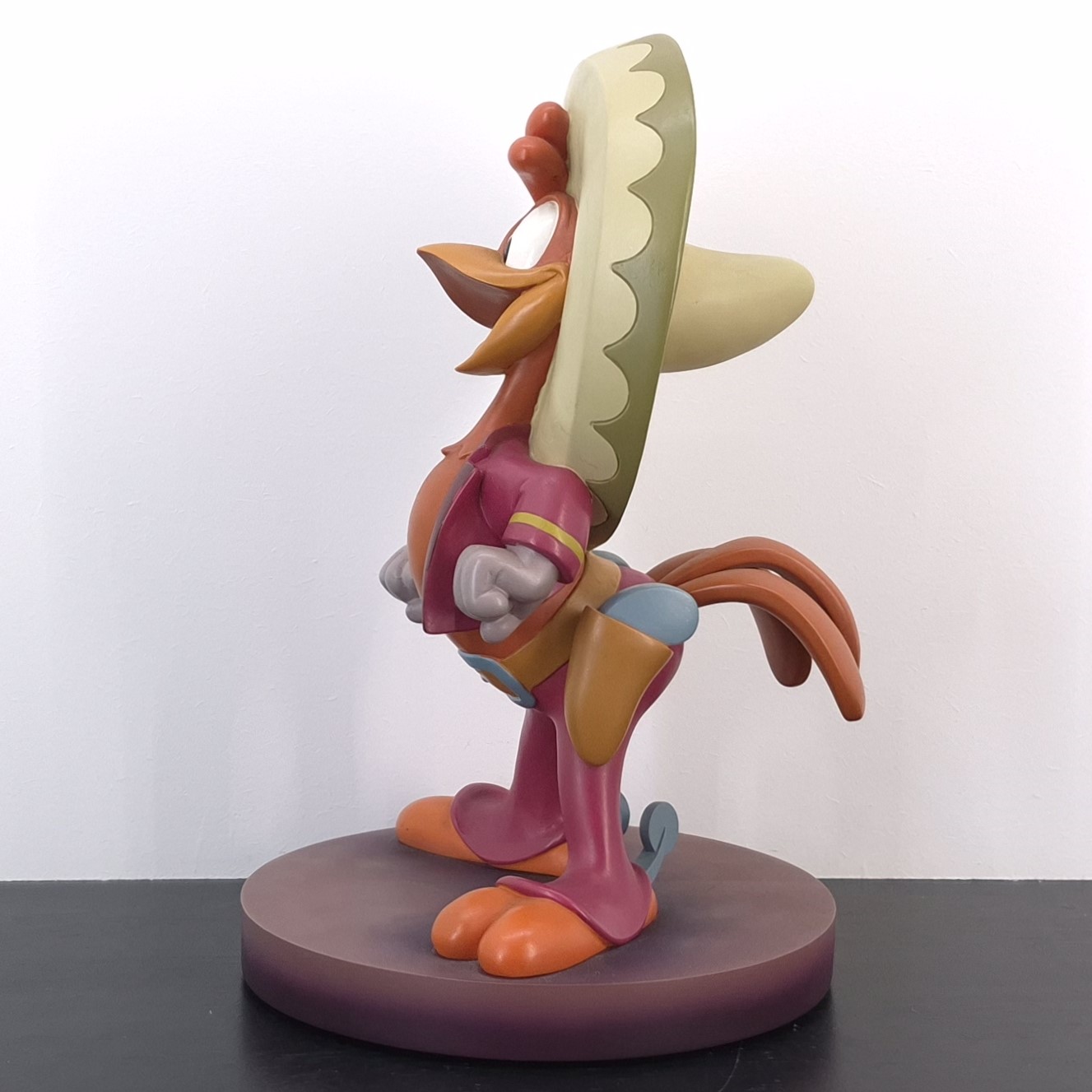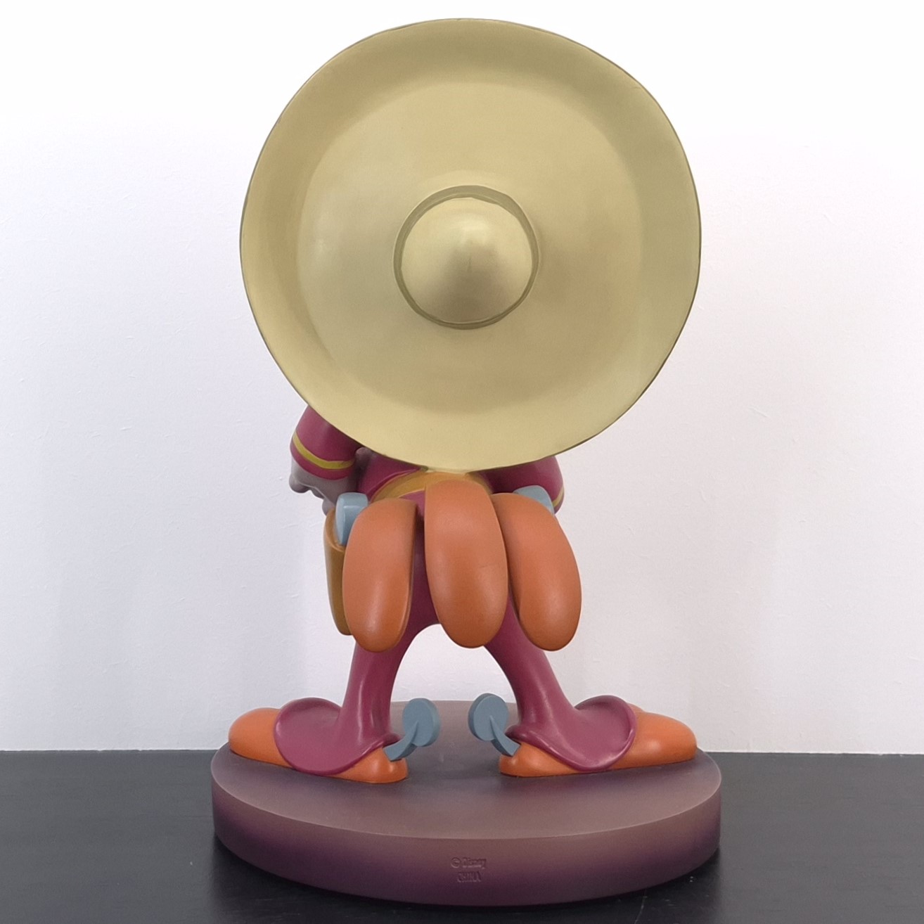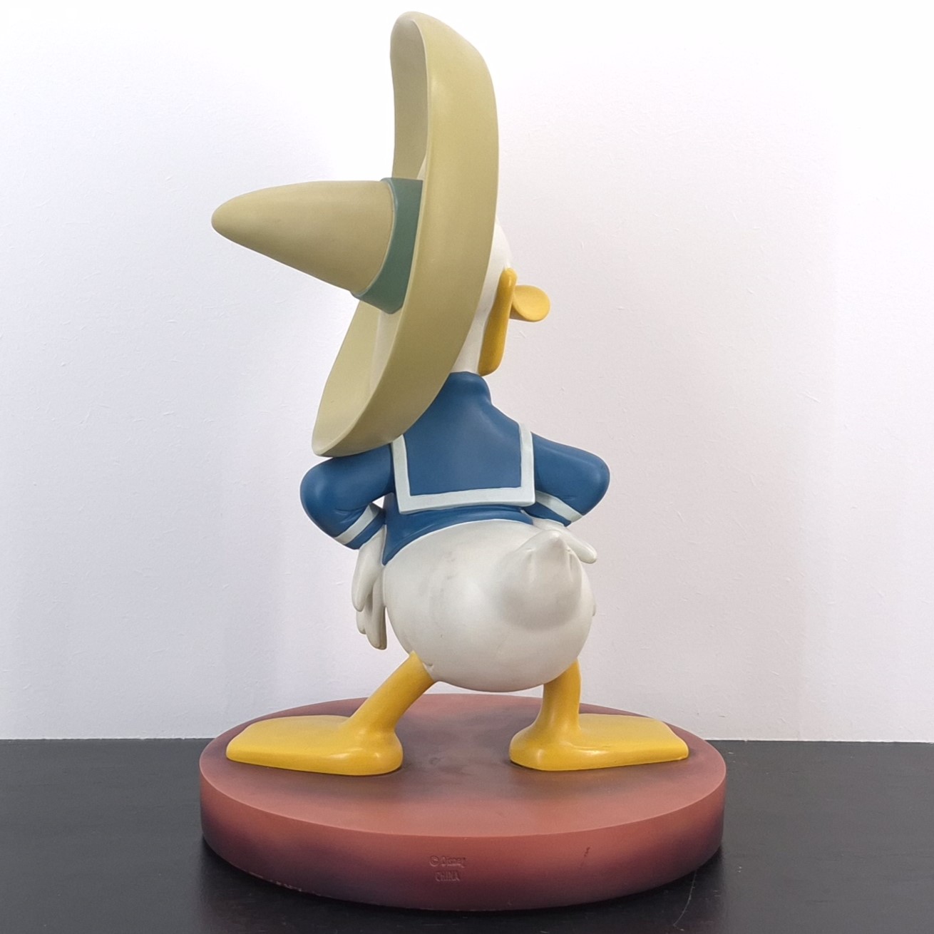 This vintage statue set from The Tree Caballeros was sculpted by Kevin and Jody under Walt Disney’s license. Dates back to 2005. Made from durable resin, it remains in very good condition. Celebrating the 60th Anniversary, the exclusive limited edition set of “The Three Caballeros”, masterfully crafted by artists Kevin and Jody. This remarkable trio includes Donald Duck, José Carioca, and Panchito Pistoles, each brought to life with exquisite detail and vibrant colors. José’s lit cigar adds an extra touch of lively animation to the set. Display these iconic characters together to capture the spirit and nostalgia of the classic Disney film. Perfect for Disney collectors and animation enthusiasts, this special edition commemorates six decades of joy, adventure, and unforgettable memories with these beloved characters.