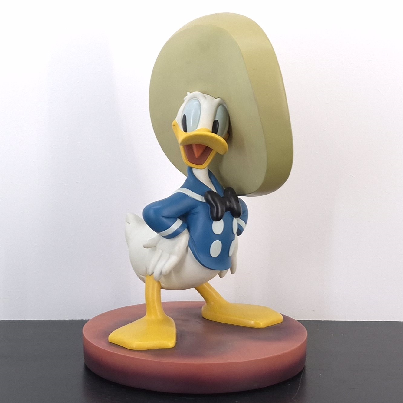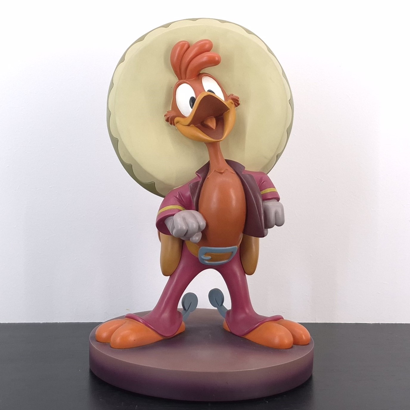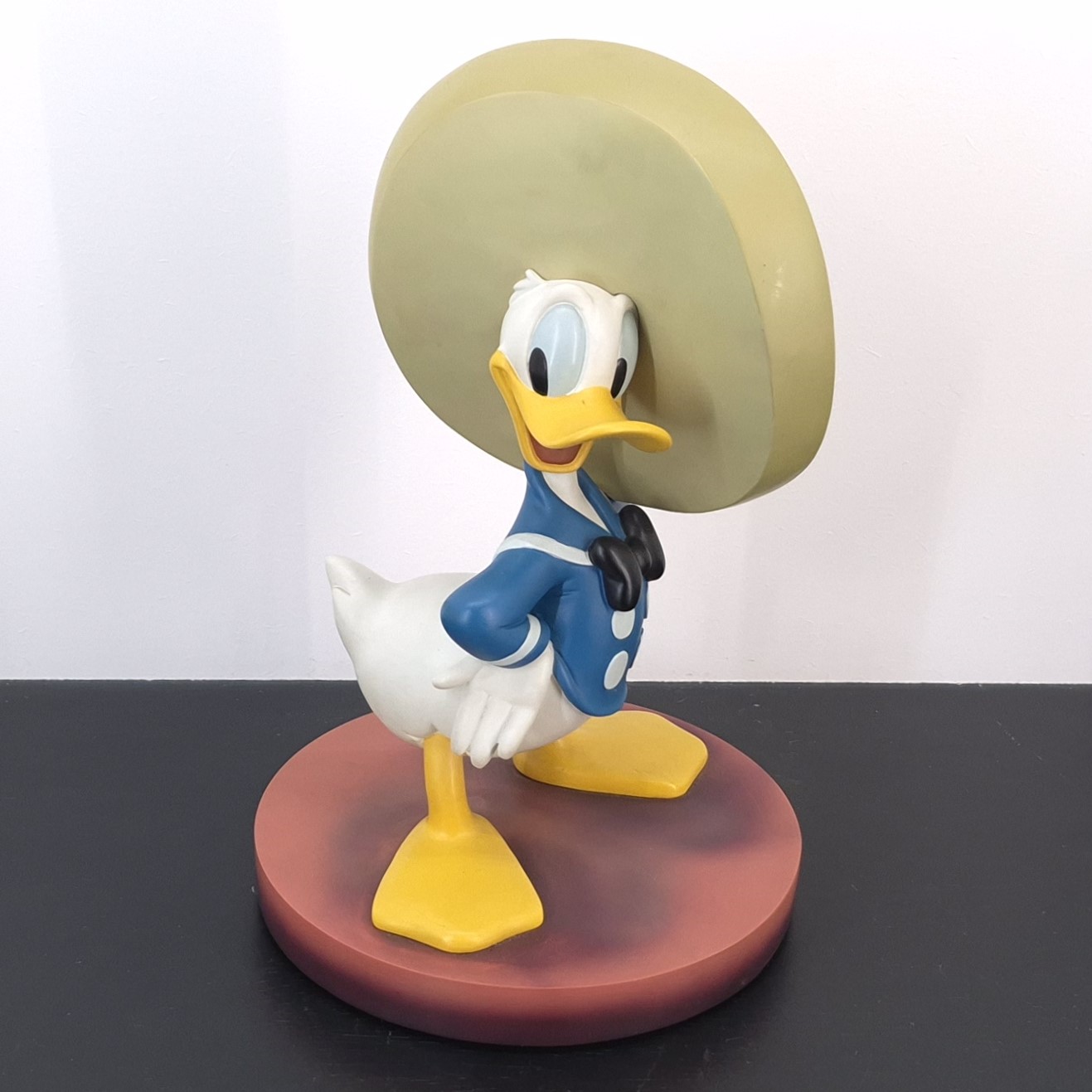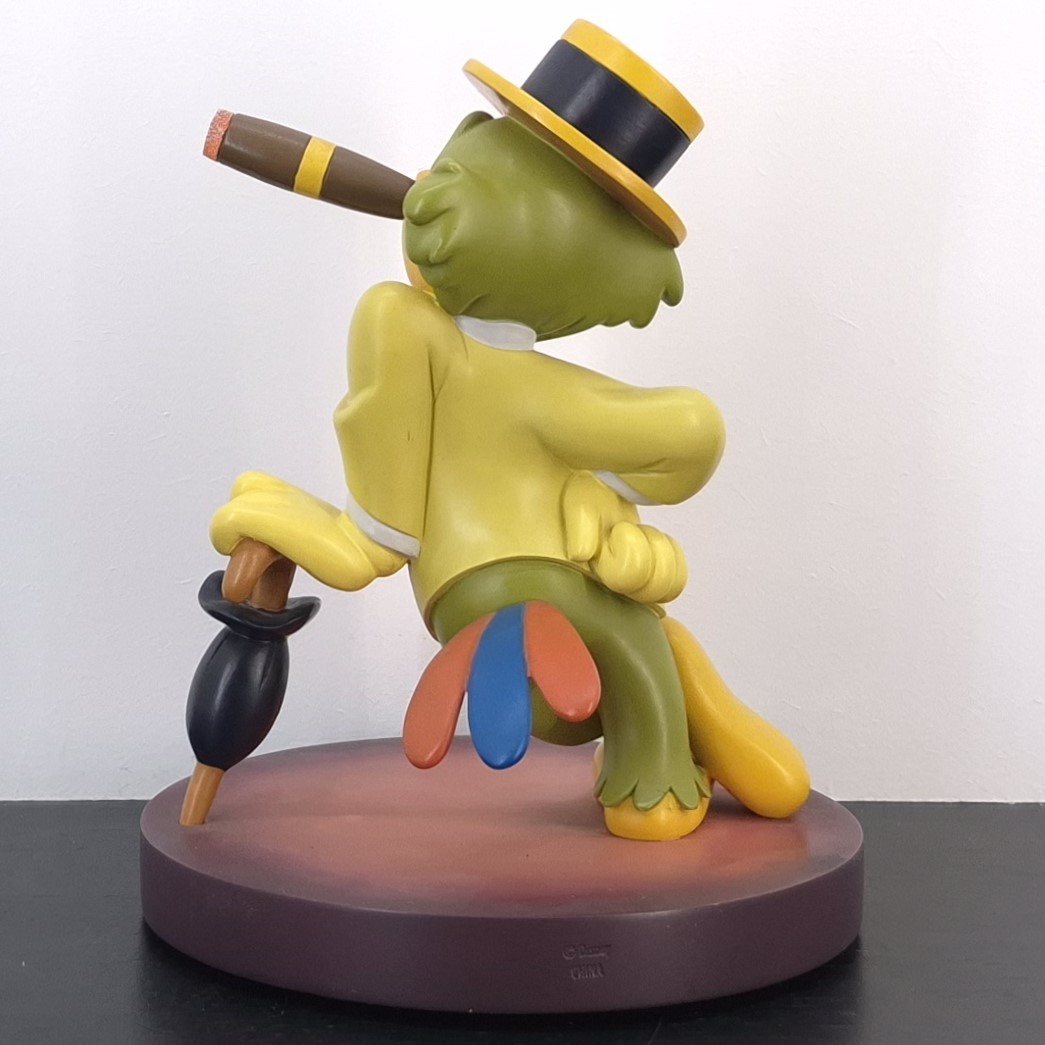 This vintage statue set from The Tree Caballeros was sculpted by Kevin and Jody under Walt Disney’s license. Dates back to 2005. Made from durable resin, it remains in very good condition. Celebrating the 60th Anniversary, the exclusive limited edition set of “The Three Caballeros”, masterfully crafted by artists Kevin and Jody. This remarkable trio includes Donald Duck, José Carioca, and Panchito Pistoles, each brought to life with exquisite detail and vibrant colors. José’s lit cigar adds an extra touch of lively animation to the set. Display these iconic characters together to capture the spirit and nostalgia of the classic Disney film. Perfect for Disney collectors and animation enthusiasts, this special edition commemorates six decades of joy, adventure, and unforgettable memories with these beloved characters.