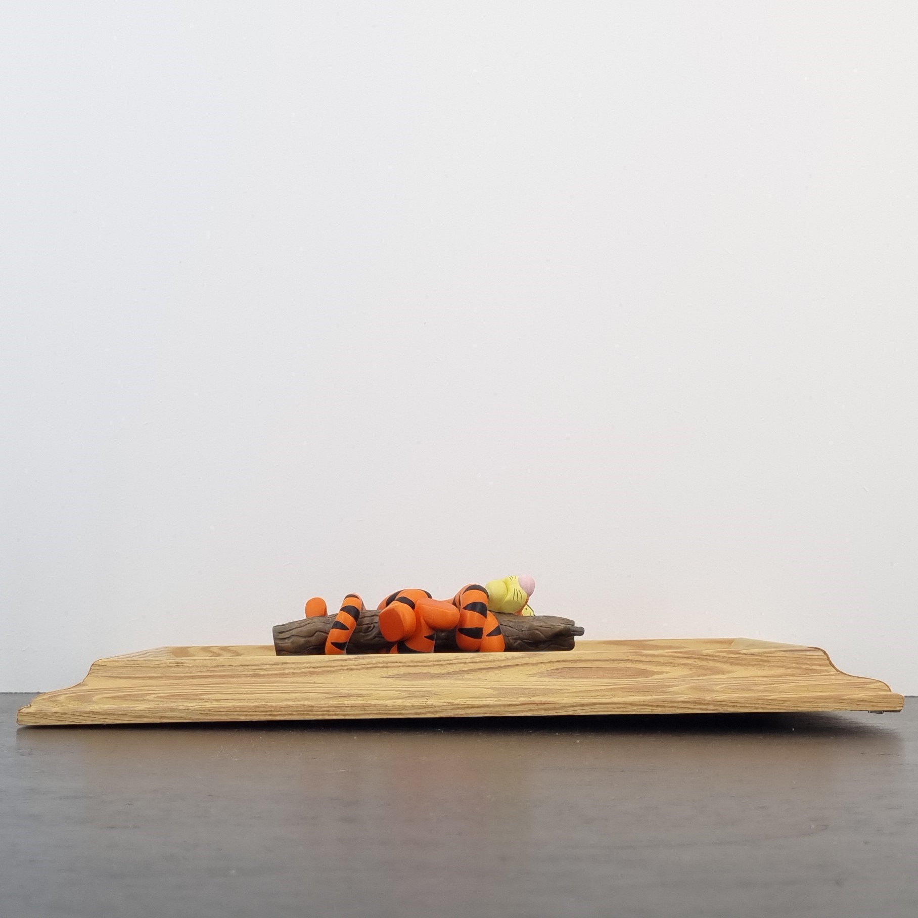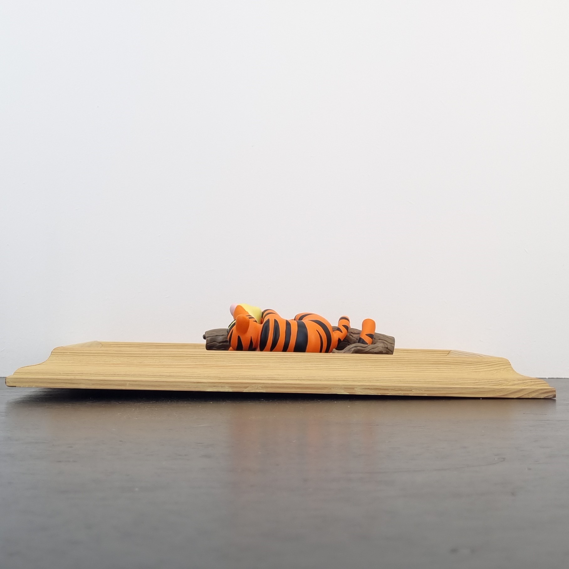 The outer dimension of this Tigger artwork is approximately 36 cm in height, crafted from durable resin, and placed in a wooden frame.