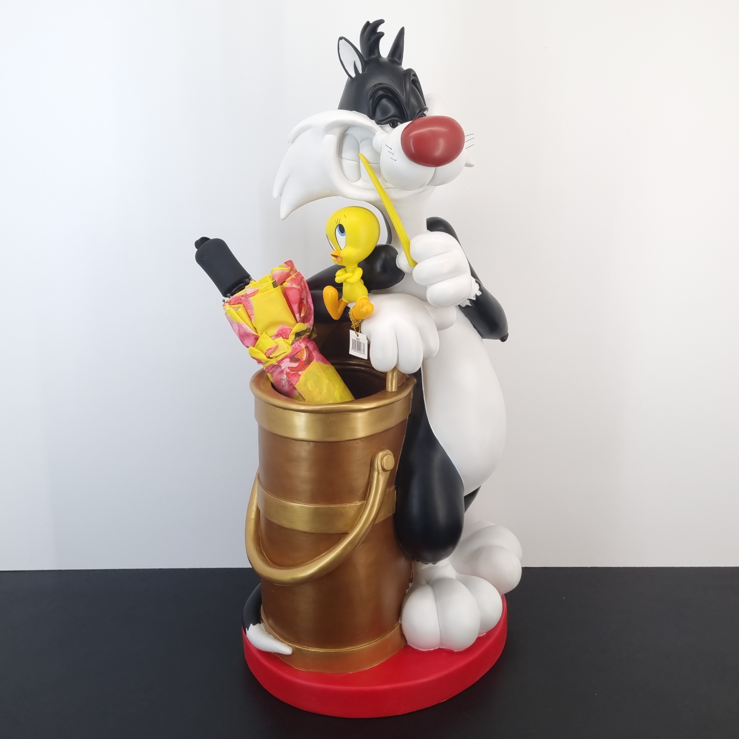 This vintage umbrella stand of Sylvester with Tweety is as magnificent as it is impressive. A true eye catcher in every room.