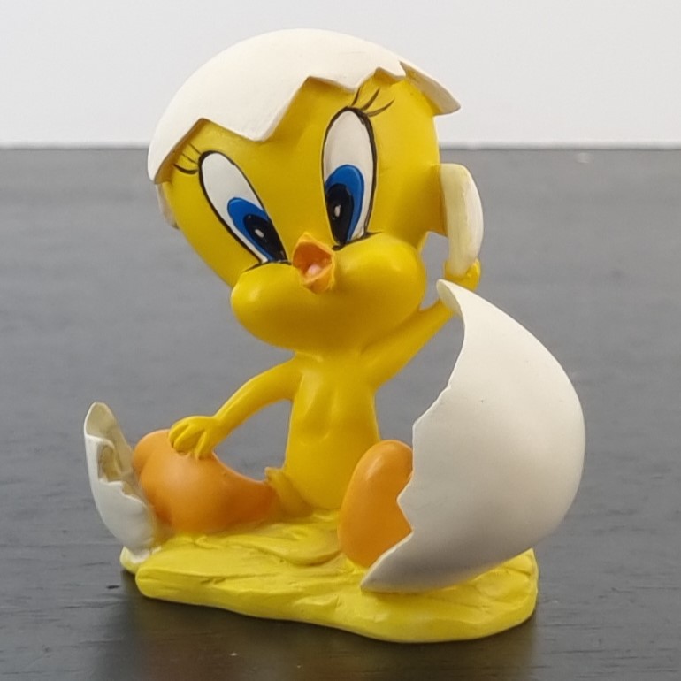 Incredible sweet Tweety Bird figurine. This vintage Tweety Bird figurine is part of a Looney Tunes Baby figurine line. Tweety Bird is coming out of the egg.