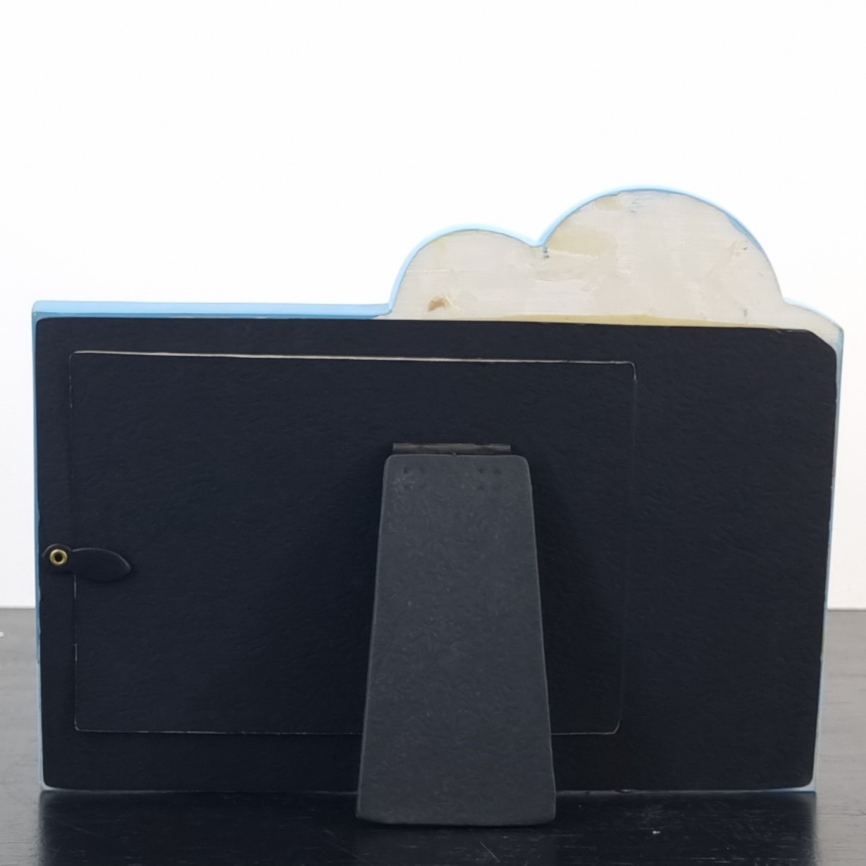 A vintage picture frame of Tweety Bird, crafted by Demons and Merveilles under Warner Bros.’ license. Dates back to the 1990s. Made from durable resin, it remains in excellent condition. Cupid Tweety Bird, perched on fluffy blue clouds, aimed his tiny bow and arrow at the picture, grinning as he prepared to spread a little love with his playful charm.