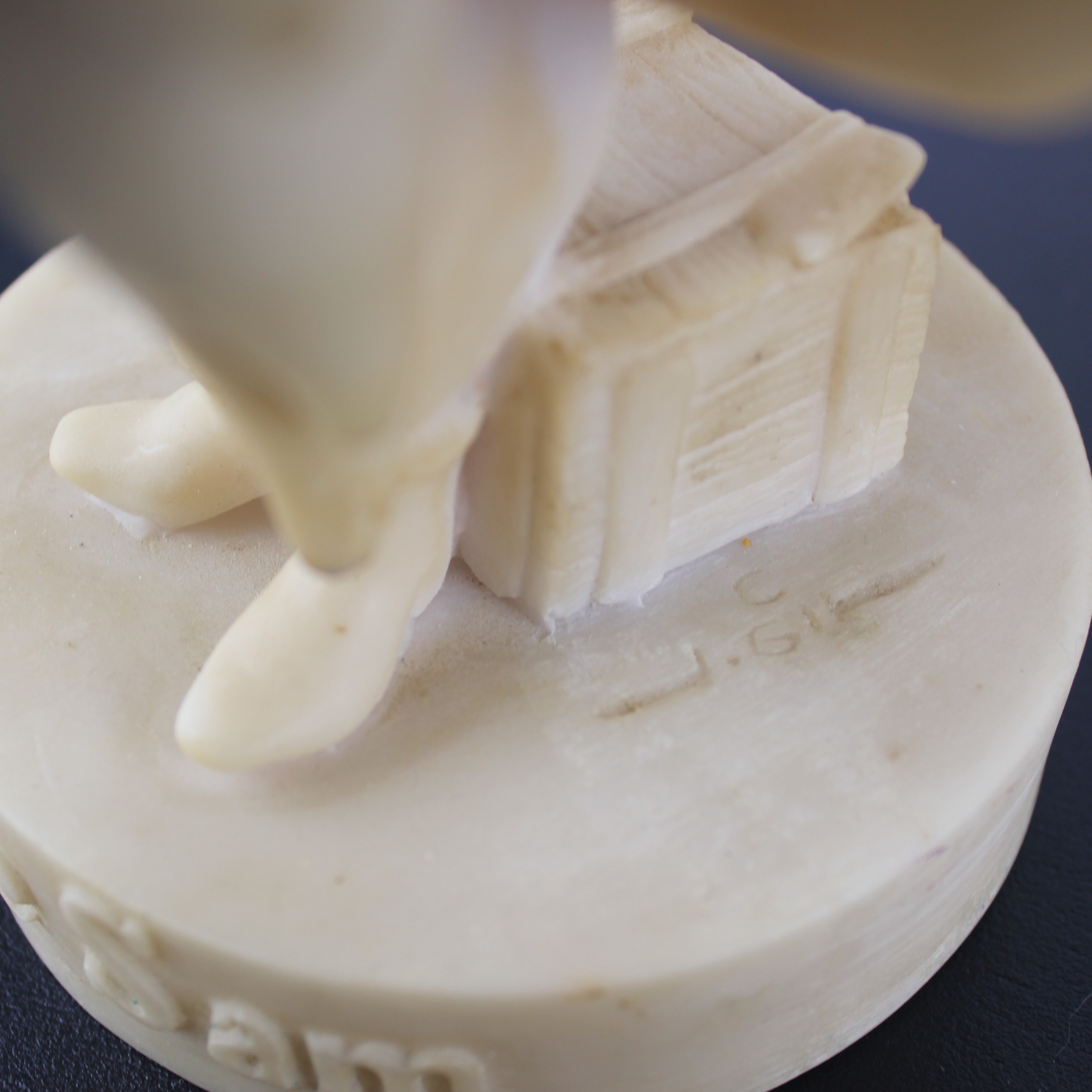 Authenticating a product like this is not easy. First of all we would have preferred to find the artist, but he did not remember who created it. This is not strange, since it is about 30 years ago and this person has worked with so many artists. We have tried to find the artist based on the signature of the statue, buth could not find the artist. Let’s remember that in the 1990’s the Internet was not yet a big thing. So information was not stored the way it is these days. We had a tour around a lot of the products he created. Based on stories we have heard before from people who also worked with Warner Bros, what he was telling is correct. Is was the same story we have heard before. we also see that the size of this statue is the same as other mid figurines that where created in the 1990’s. The material of the statue is material the often use to sculpt a original statue (Albast/Soapstone).
