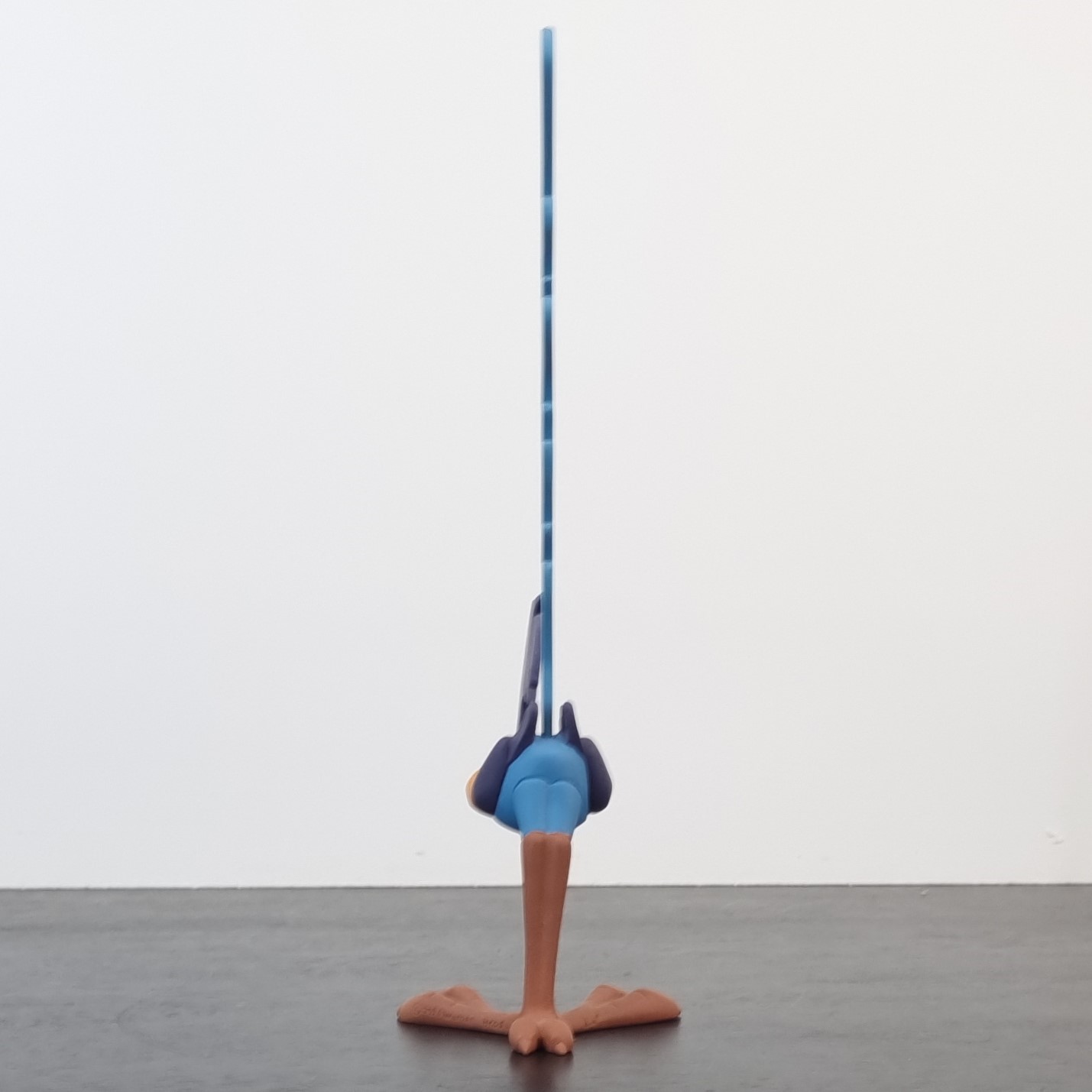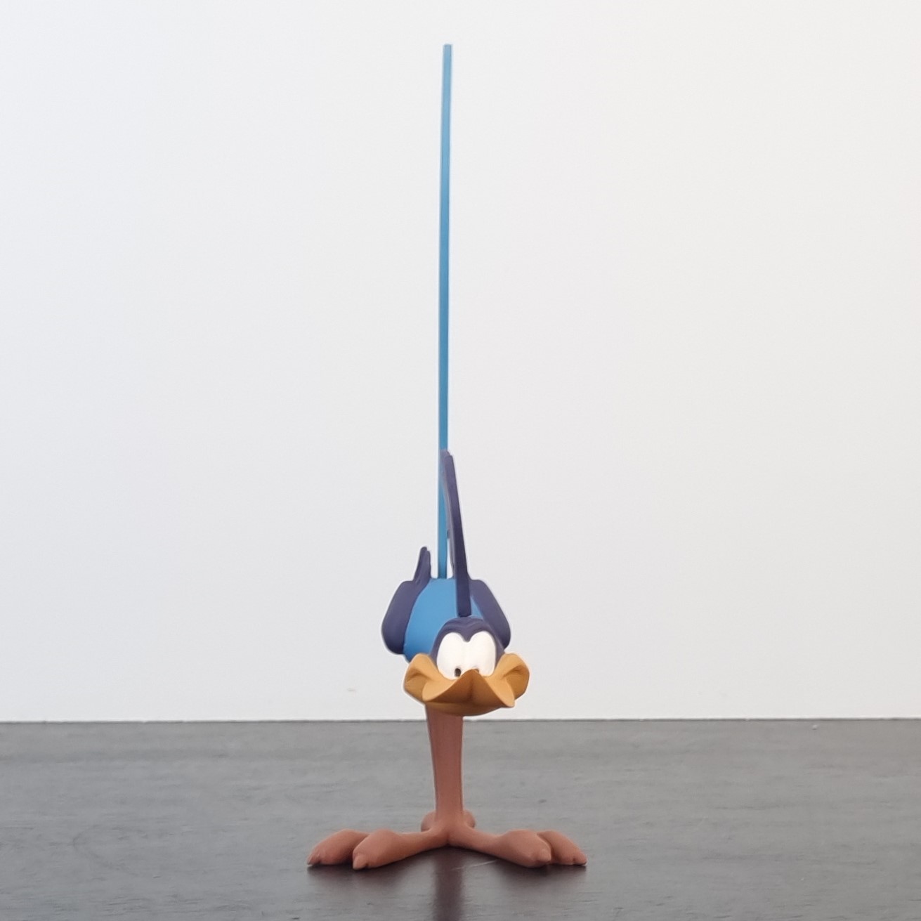 This vintage statue from Road Runner was sculpted by Marie Leblon under Warner Bros.’ license. It was taken in production by Leblon-Delienne. Dates back to 1996. Crafted from durable resin, it remains in excellent condition. Add a moment of curiosity to your collection with this Road Runner statue by Leblon-Delienne. Instead of racing ahead, Road Runner is captured standing still, tail raised high and head lowered as if spotting something on the ground. His focused eyes and poised stance reveal a rare, quiet side of the famously speedy character. The sculpt’s clean lines and vibrant colors bring out his iconic feathers and playful personality. Both unique and full of charm, it offers a fresh take on a classic Looney Tunes favorite. A must-have collectible for fans of Road Runner and animation artistry.