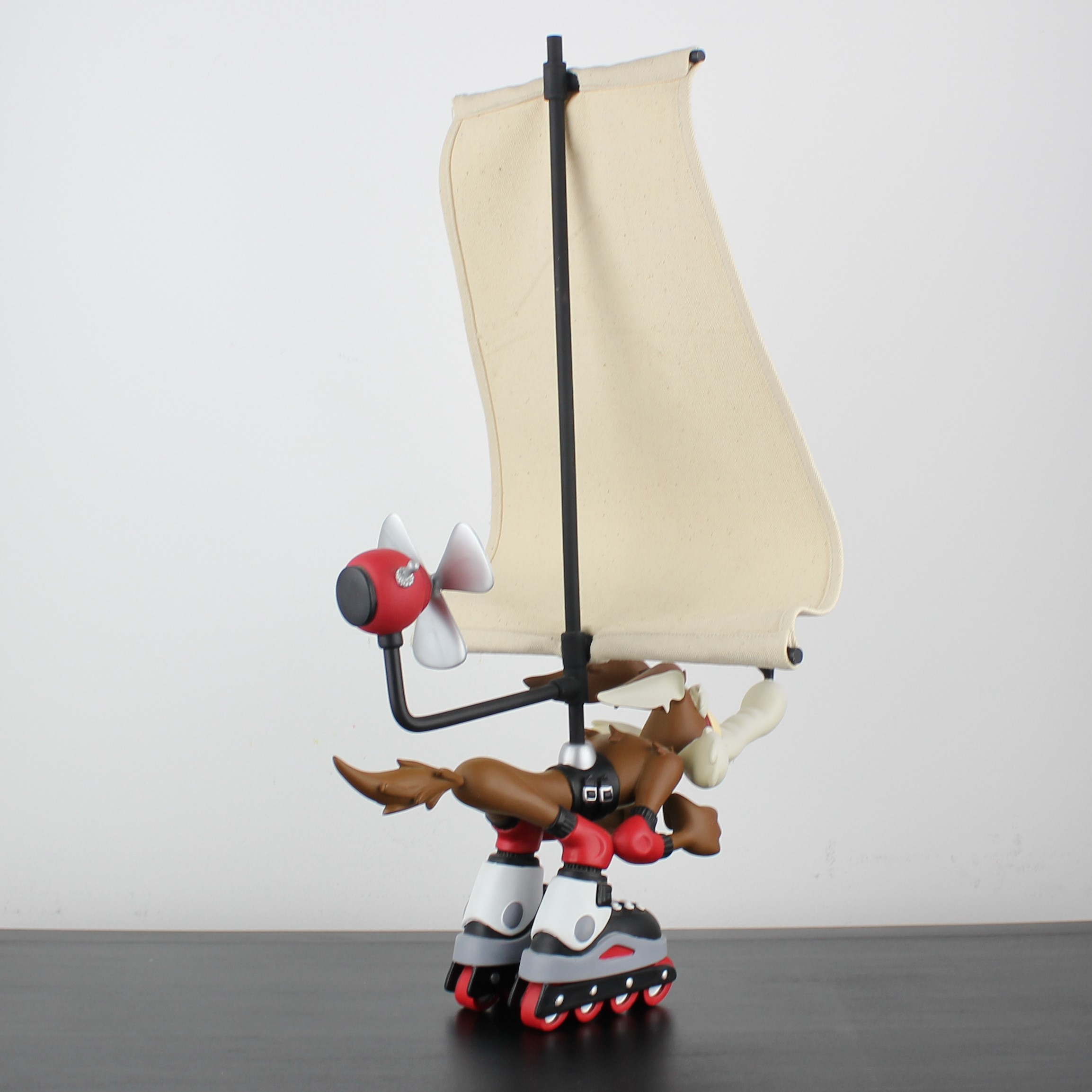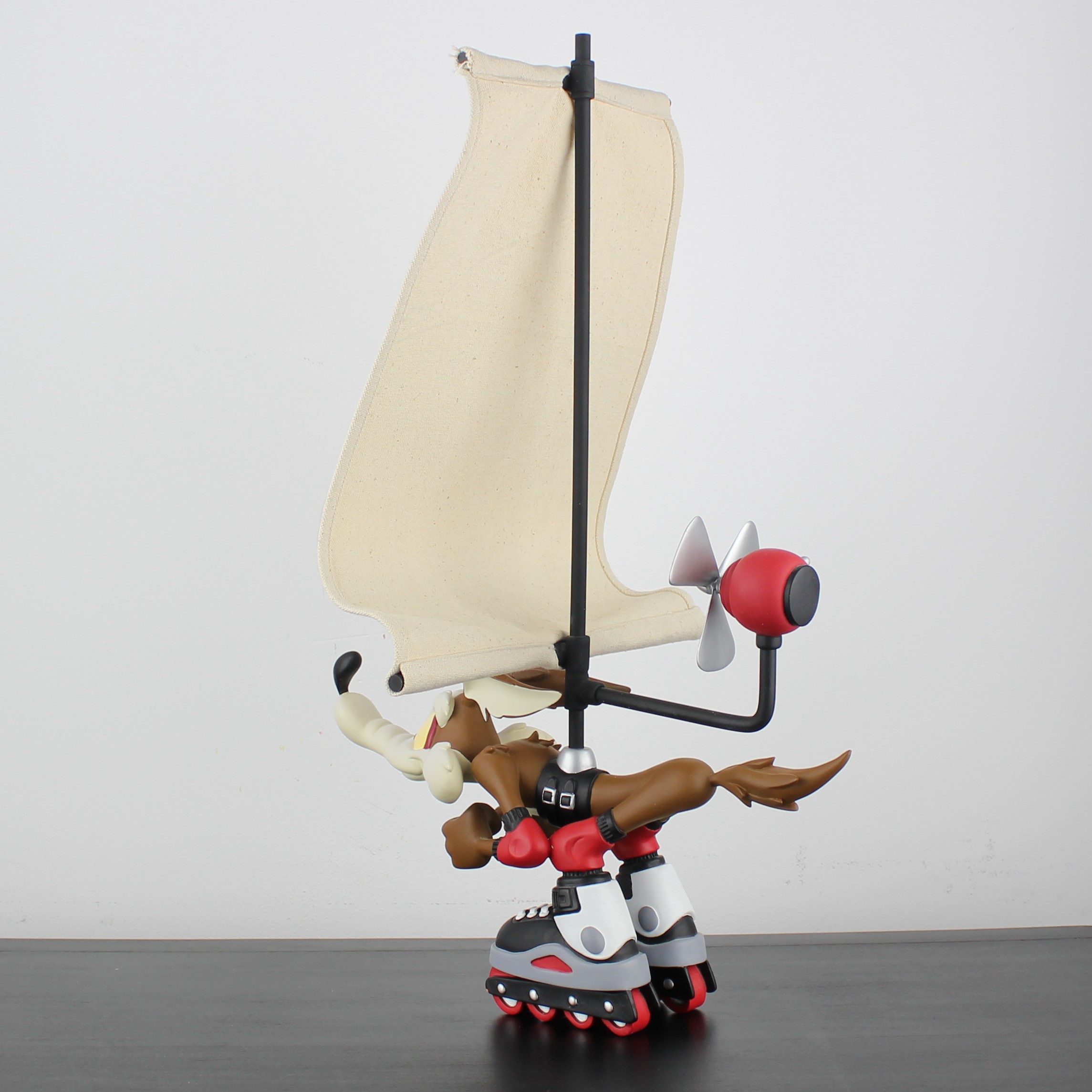 Wile E Coyote is always thinking of a cunning way to catch the roadrunner. A lof of the ways of the Coyote are extreme. Here is Wile E. Coyote making a classic move to catch the road runner. Putting on his skates, using a propeller to make wind in his giant windbreak. A limited edition. Incredible statue and made from high quality Polyresin. The windbreak is made from cloth and the bars are made from metal/aluminium. Do not underestimate the size of this statue, he is big.