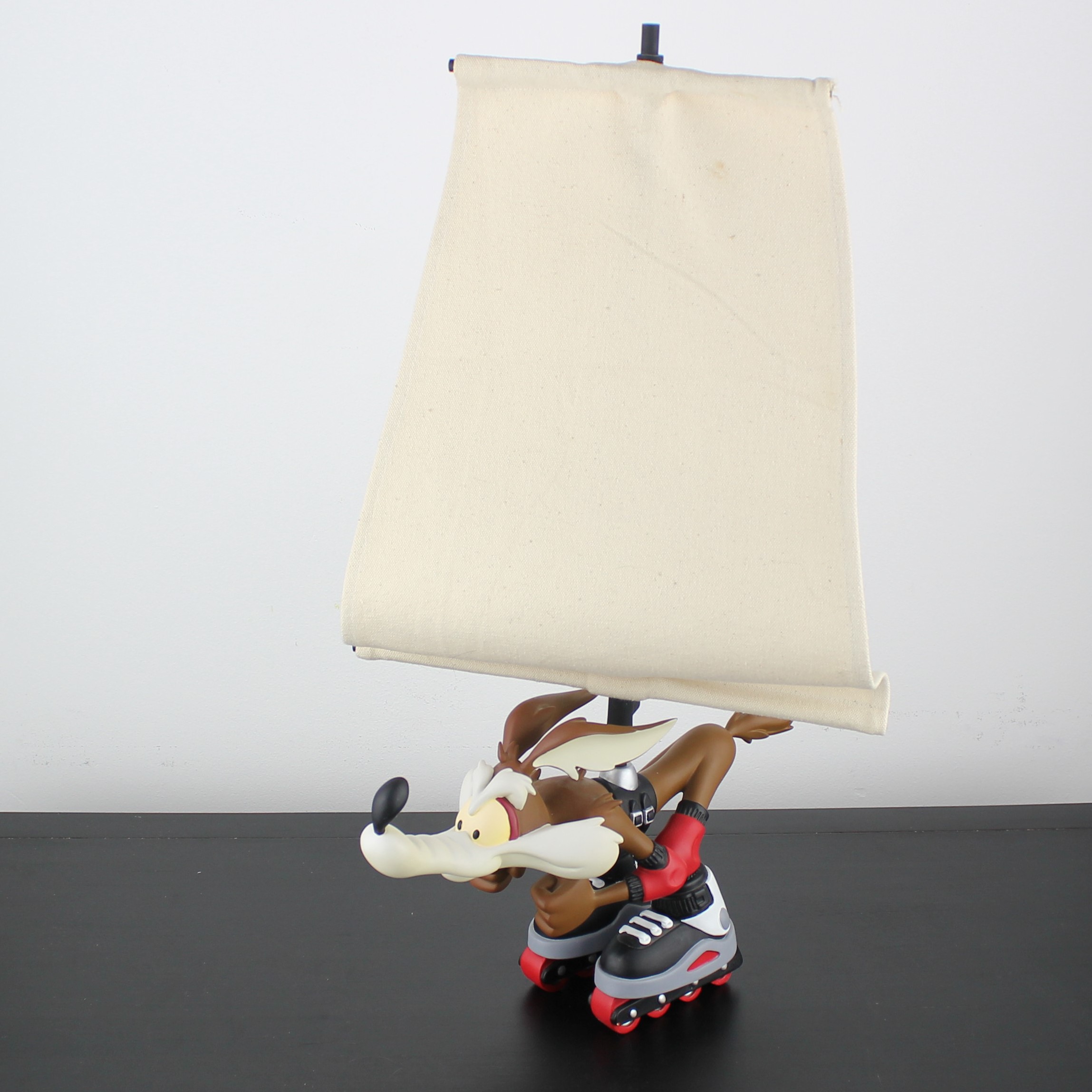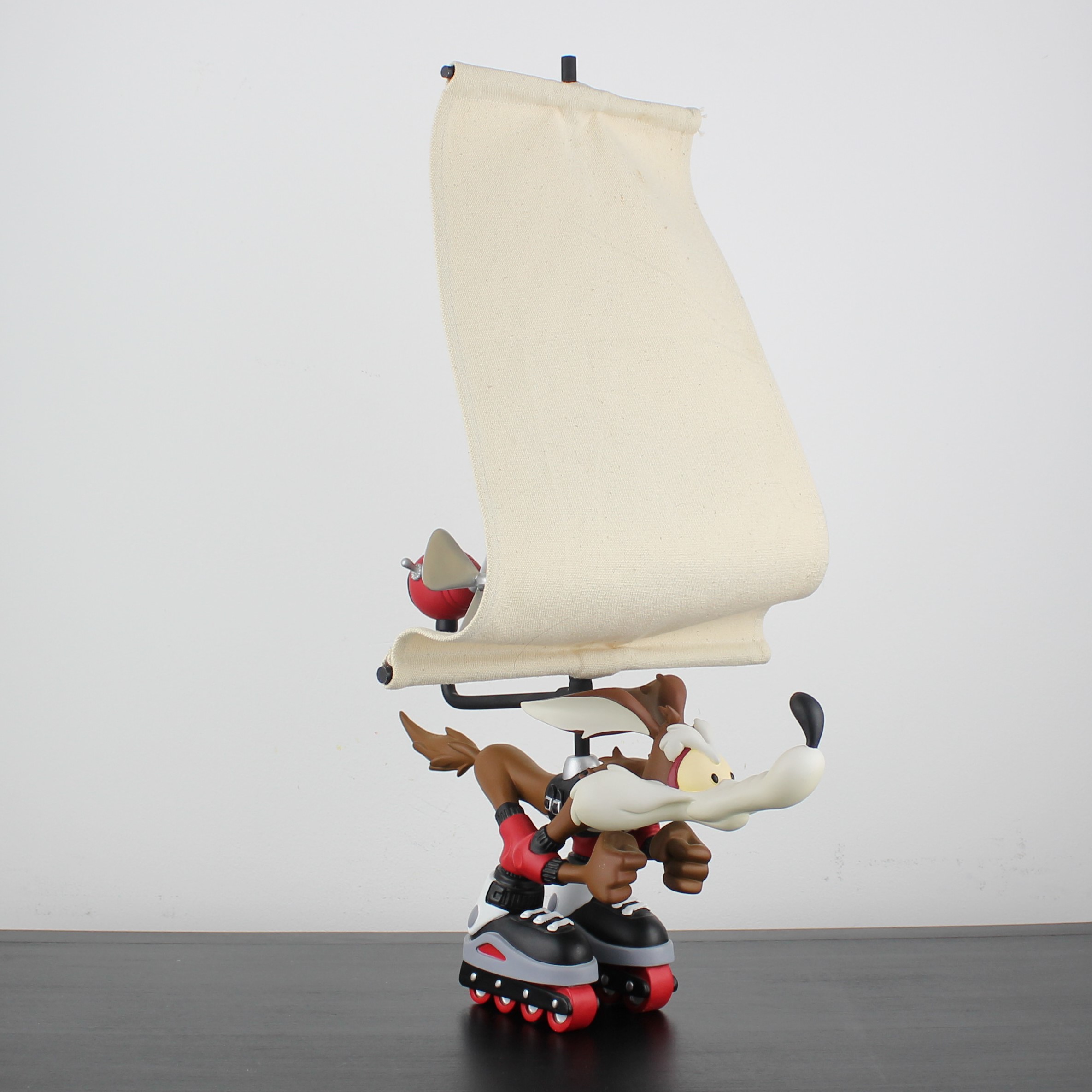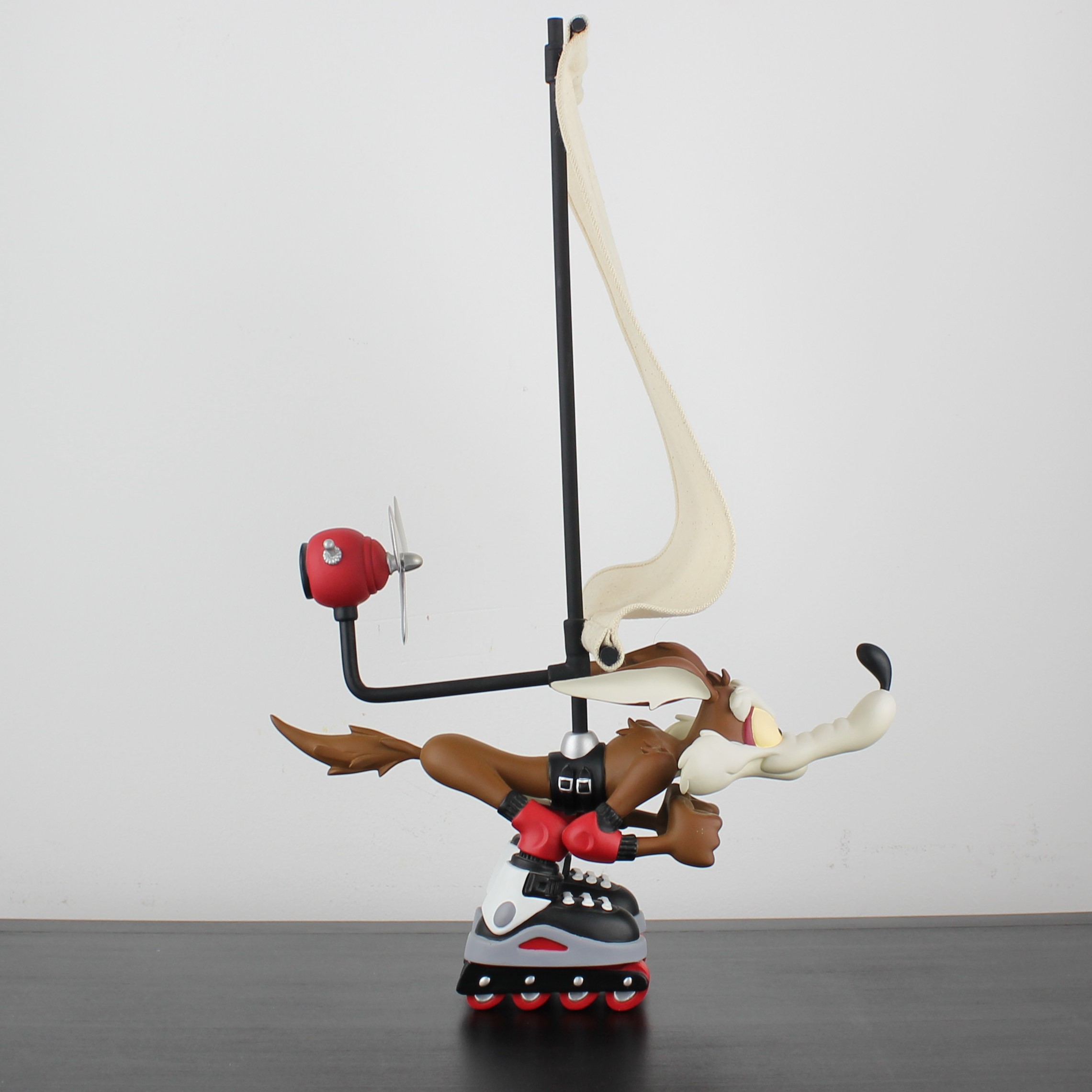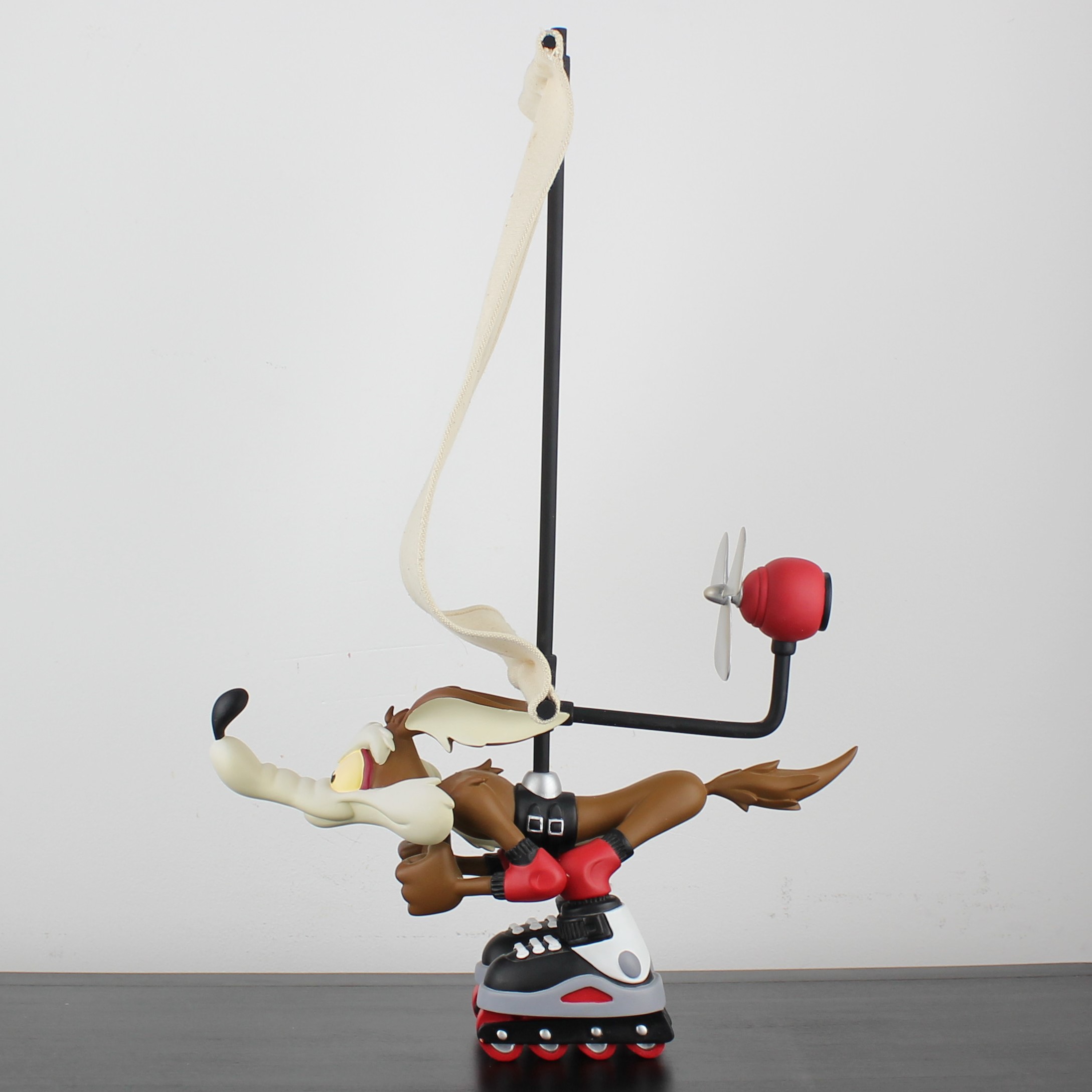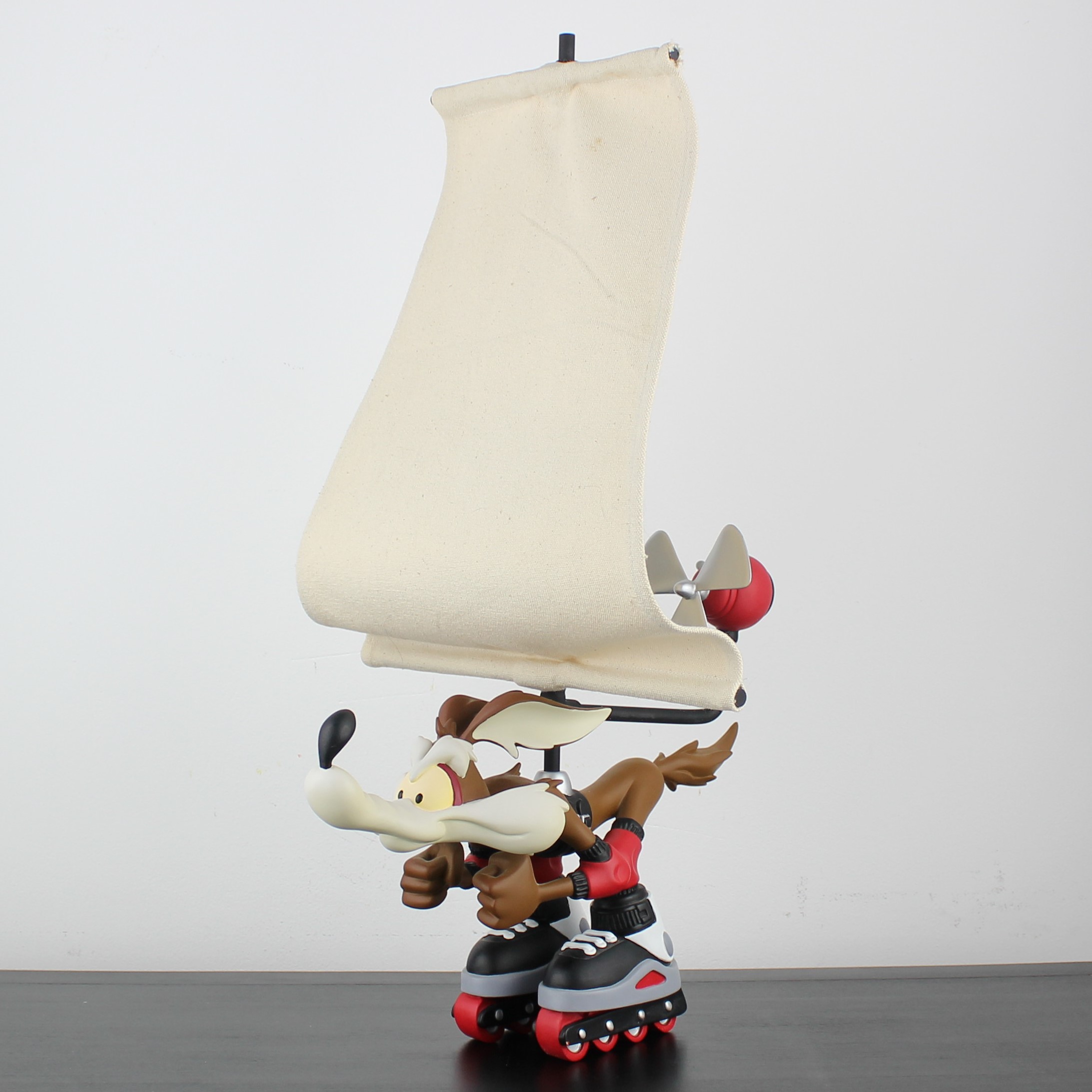 Vintage Wile E. Coyote on skates with a giant windbreak statue. Demons and Merveilles produced this amazing Wile E. Coyote on skates statue in license of Warner Bros. This Wile E. Coyote collectible is made from high quality resin. The statue is in excellent condition and comes with the original box and COA.