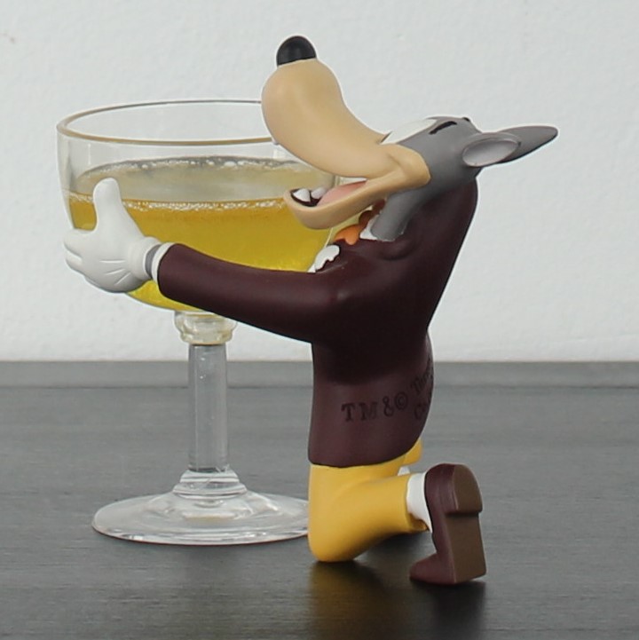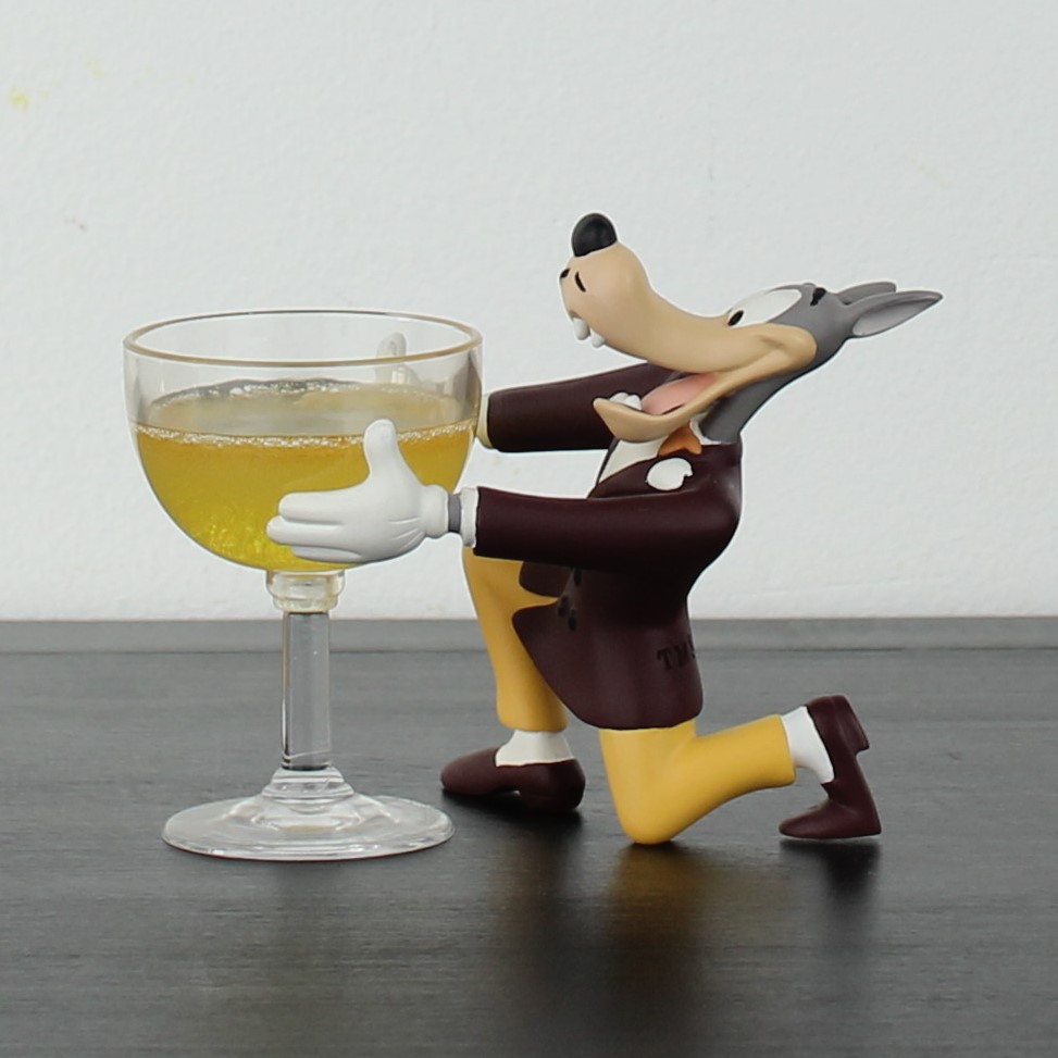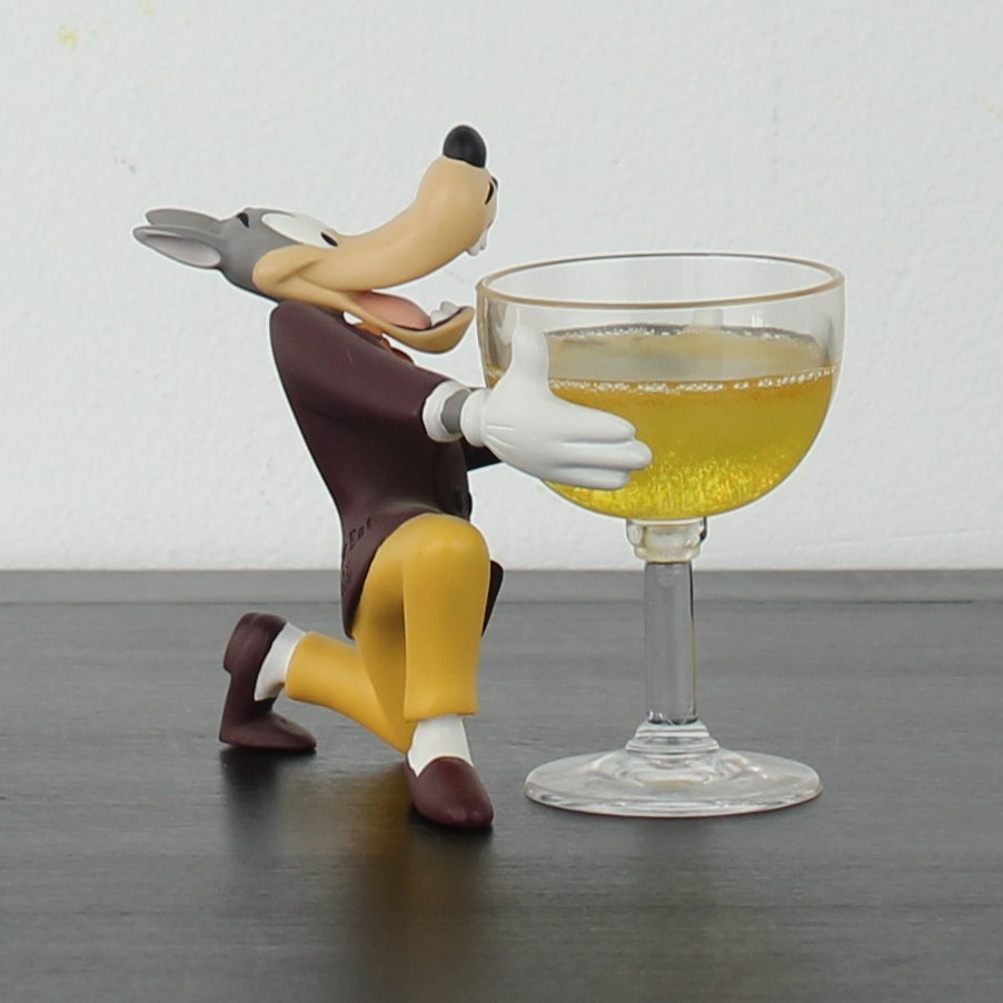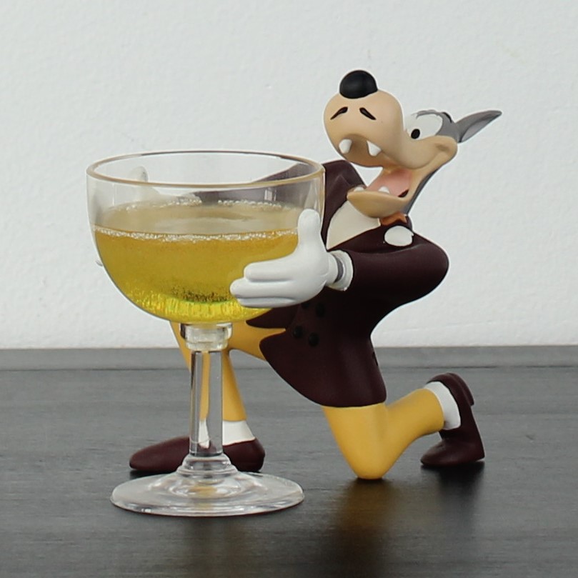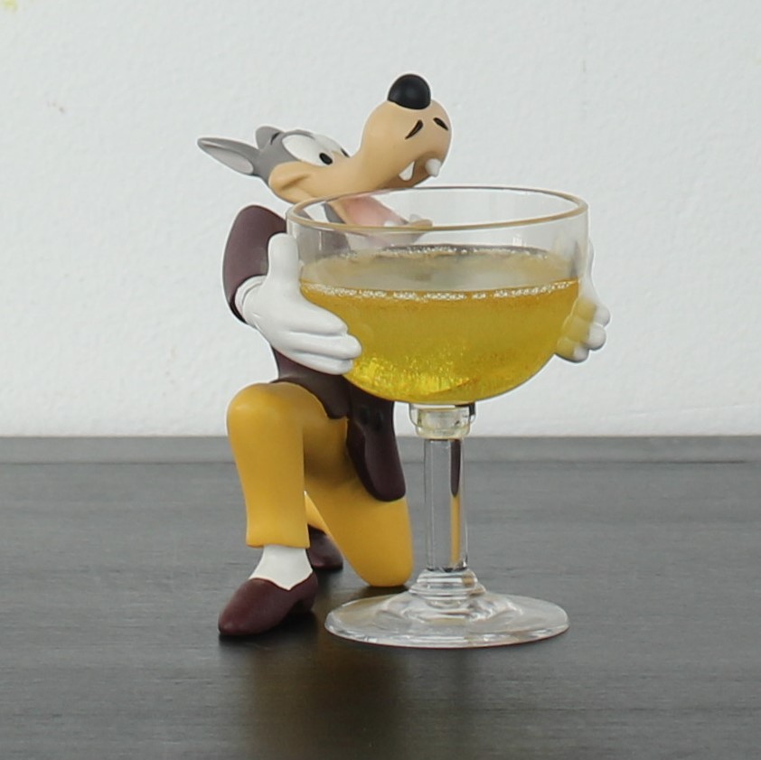 Vintage Wolf holding a champagne glass figurine. This Wolf Tex Avery collectible was made in license of Turner Entertainment. Demons and Merveilles produced this collectible Tex Avery figurine from high quality resin. This vintage collectible was produced in the year 2004. The figurine is in excellent condition.
